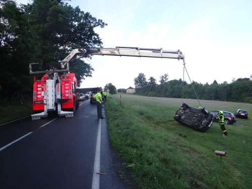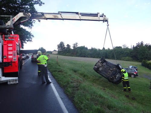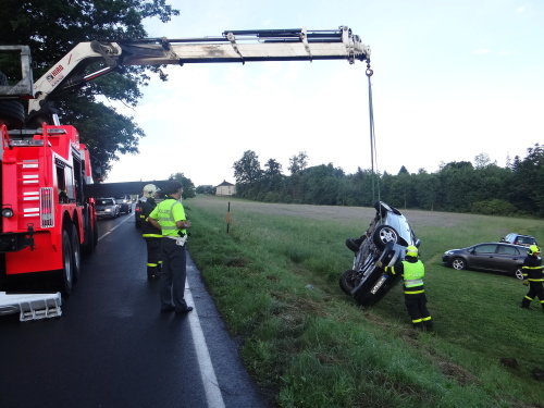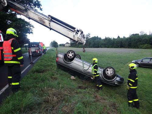 Ke druhé nehodě s vyprošťováním vyjely dvě jednotky HZS MSK - ze stanic Bílovec a Ostrava-Zábřeh - v sobotu brzy ráno na kopec spojující Horní Lhotu (okres Ostrava-město) a Kyjovice (okres Opava). Volkswagen skončil v příkopu na střeše, jeho řidič vyvázl bez zranění.