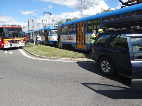 Silniční doprava v ulici Dr. Martínka se během páteční špičky zkomplikovala. Řidiči několika tramvají za sebou a netrpěliví cestující museli čekat na obnovení městské hromadné dopravy až na vyproštění vozidla hasiči. Nehoda se obešla bez úniku provozních kapalin.