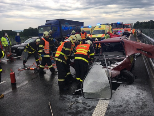 Na dvou místech okresu Nový Jičín vyprošťovali hasiči v pátek 16.6.2017 ráno celkem dva zraněné a zaklíněné řidiče středního věku. První nehoda - dvou nákladních automobilů Iveco a Volvo - se stala v obci Fulnek-Děrné, hasiči zde vyprošťovali řidiče Iveca. Druhá - hned čtyř vozidel - se stala na dálnici D1 u Hladkých Životic, hasiči zde vyprošťovali řidiče osobního automobilu Škoda Favorit. V obou případech museli použít hydraulické vyprošťovací nástroje.