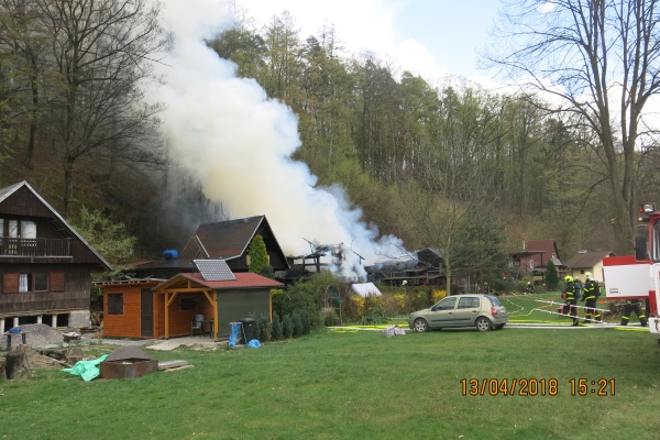 Požár rekreační chaty byl ohlášen na Operační a informační středisko HZS Moravskoslezského kraje v 14:30 hodin v pátek 13. dubna 2018. Postupně bylo na místo požáru v chatové osadě vysláno 10 hasičských jednotek a celkem 11 hasičských vozů.