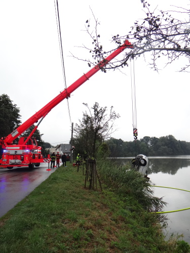 Dvě jednotky profesionálních hasičů (HZS MSK) zasahovaly v sobotu 25.8.2018 dopoledne v Rychvaldu (okres Karviná) u rybníku Skučák, do něhož předtím vjel osobním automobilem Škoda Fabia značně opilý řidič a jeho světlá fabia skončila ve vodě na střeše.