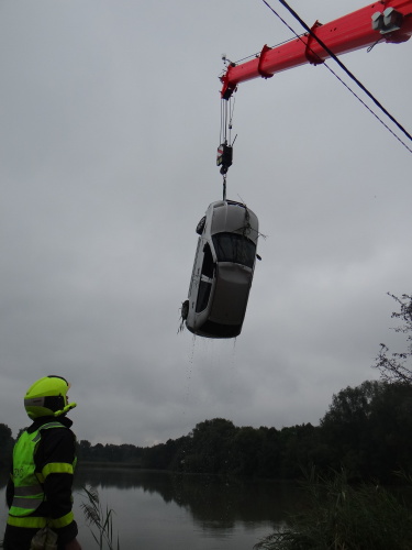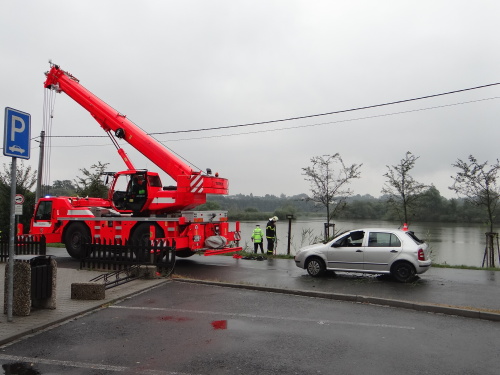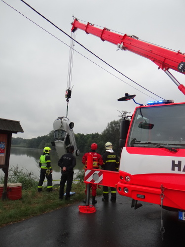 O kontrolu prázdnosti (tedy bez dalších osob) napůl potopené fabie, ležící na střeše kousek od břehu rybníka, se postarali profesionální hasiči Hasičského záchranného sboru Moravskoslezského kraje (HZS MSK) - ze stanic Bohumín a Karviná. Ti sem vedle jeřábu AJ AC40 Terex/Demag pro jistotu přivezli v lodním kontejneru i dva čluny a nepromokavé kombinézy, nafukovací vesty a přilby k případné záchraně dalších potenciálních cestujících. Žádní nebyli nelezeni.