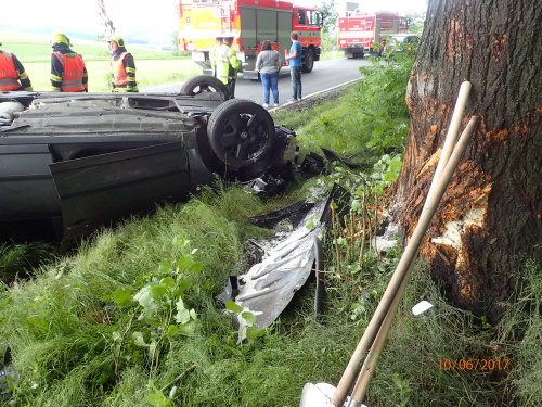 Dvě jednotky hasičů zasahovaly v sobotu 10.6.2017 odpoledne v obci Jindřichov ve Slezsku (okres Bruntál) u nehody osobního automobilu Škoda Superb, který skončil na střeše ve vzrostlém stromě. Zraněná řidička byla odvezena sanitkou do nemocnice.