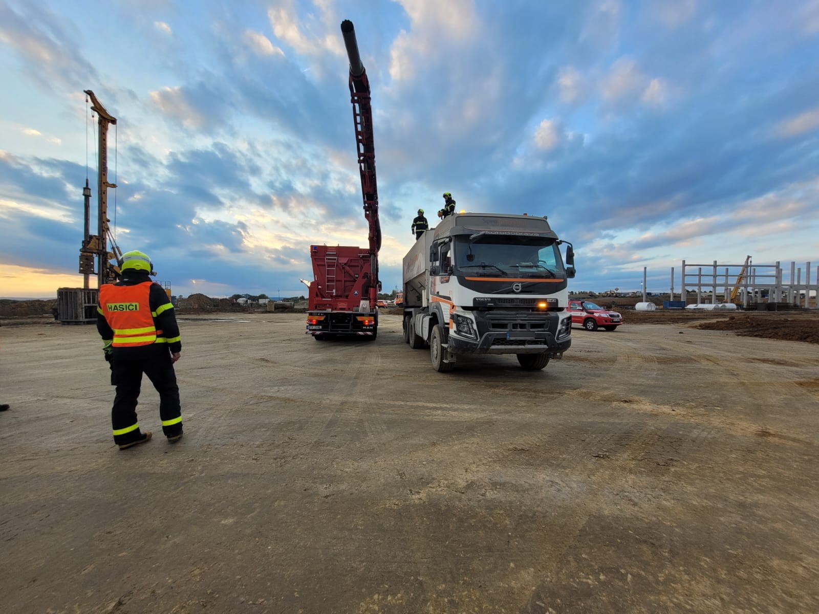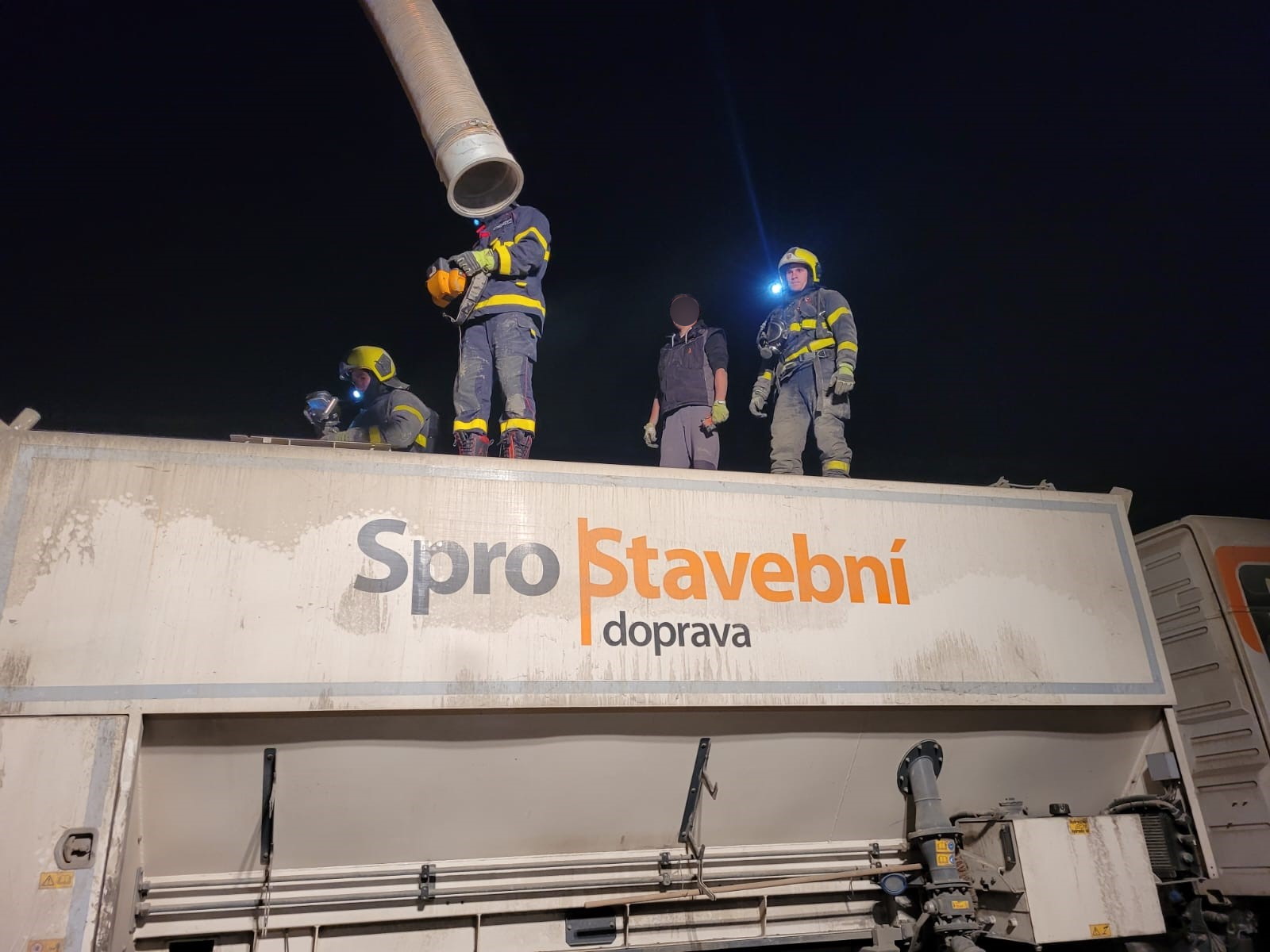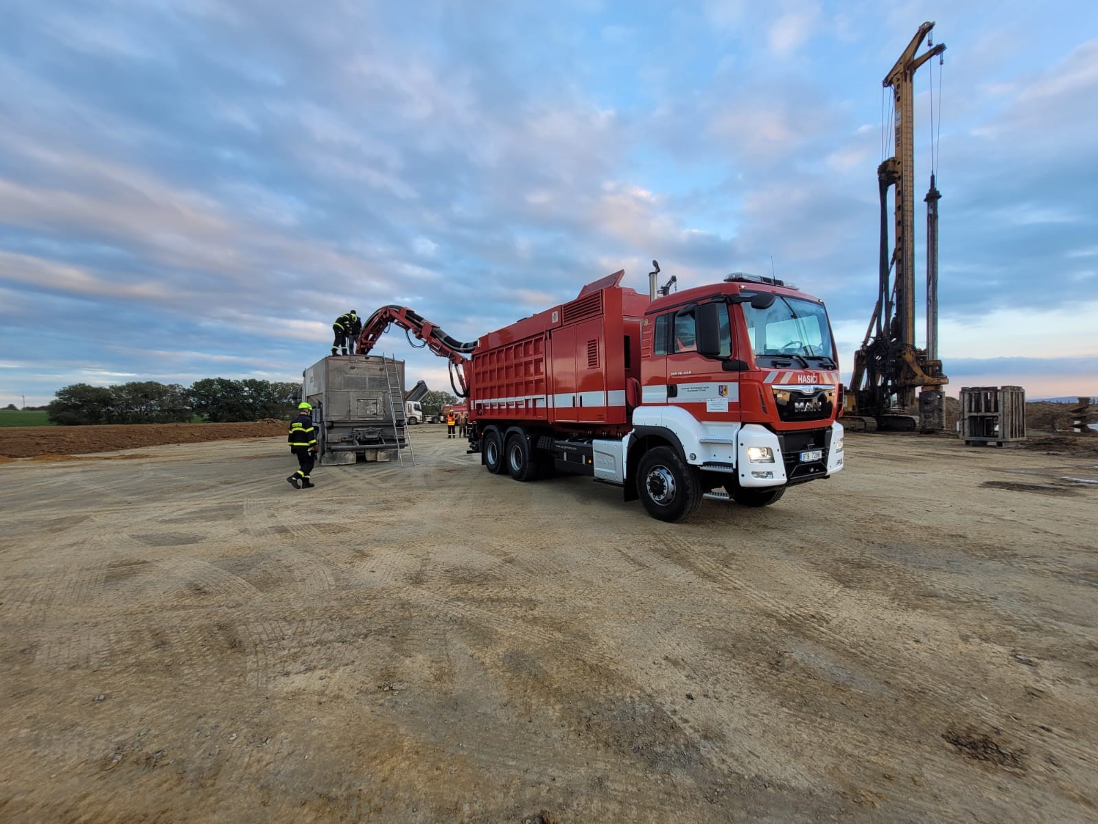 Při příjezdu jednotky bylo jasné, že ruční vyprázdnění stroje není možné, jelikož se v zásobníku nacházelo 10 tun směni cementu a popílku určené ke stabilizaci zeminy. Velitel zásahu si tak zažádal o vyslání speciálního sacího bagru, který mají ve své výbavě kolegové ze Záchranného útvaru v Hlučíně.