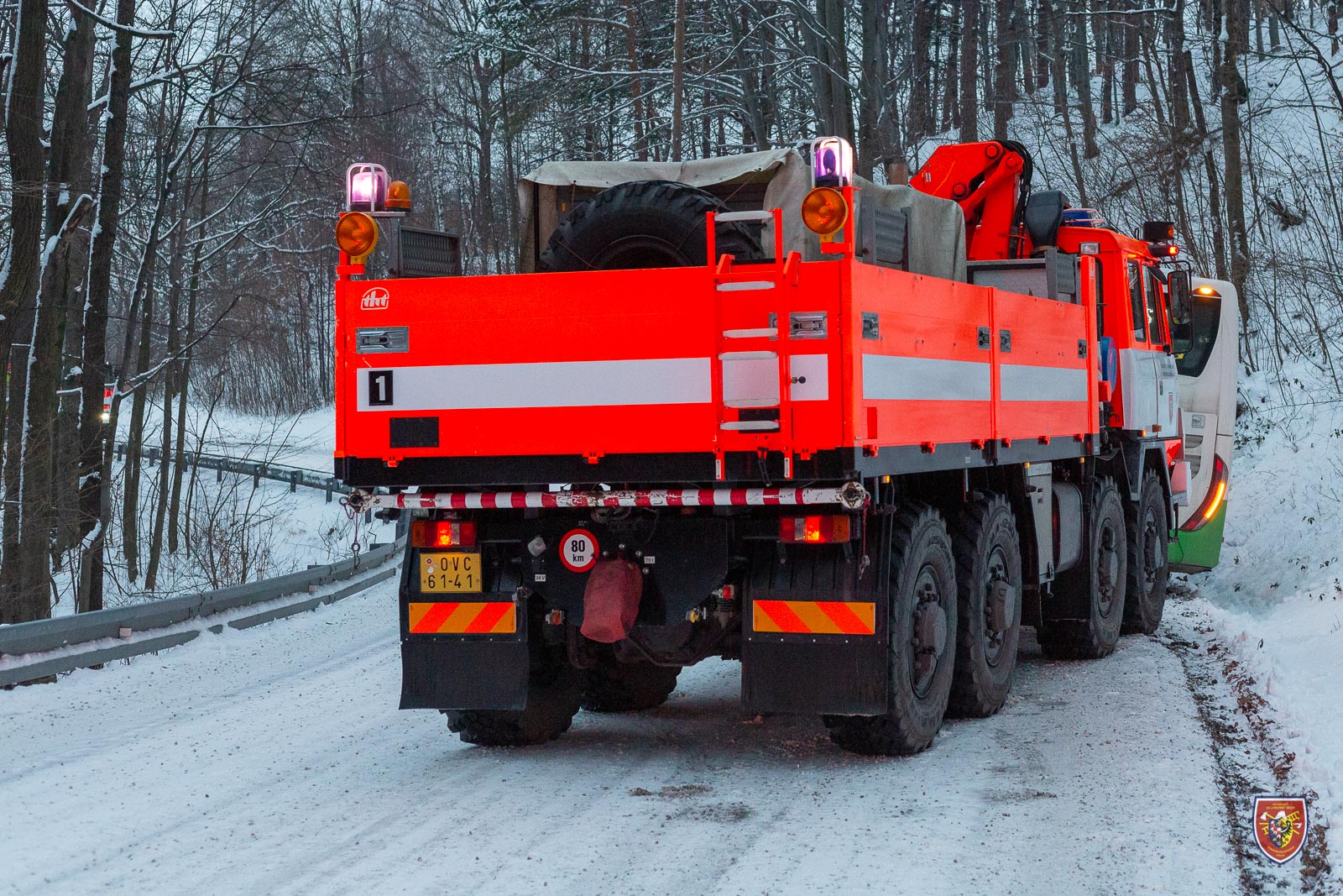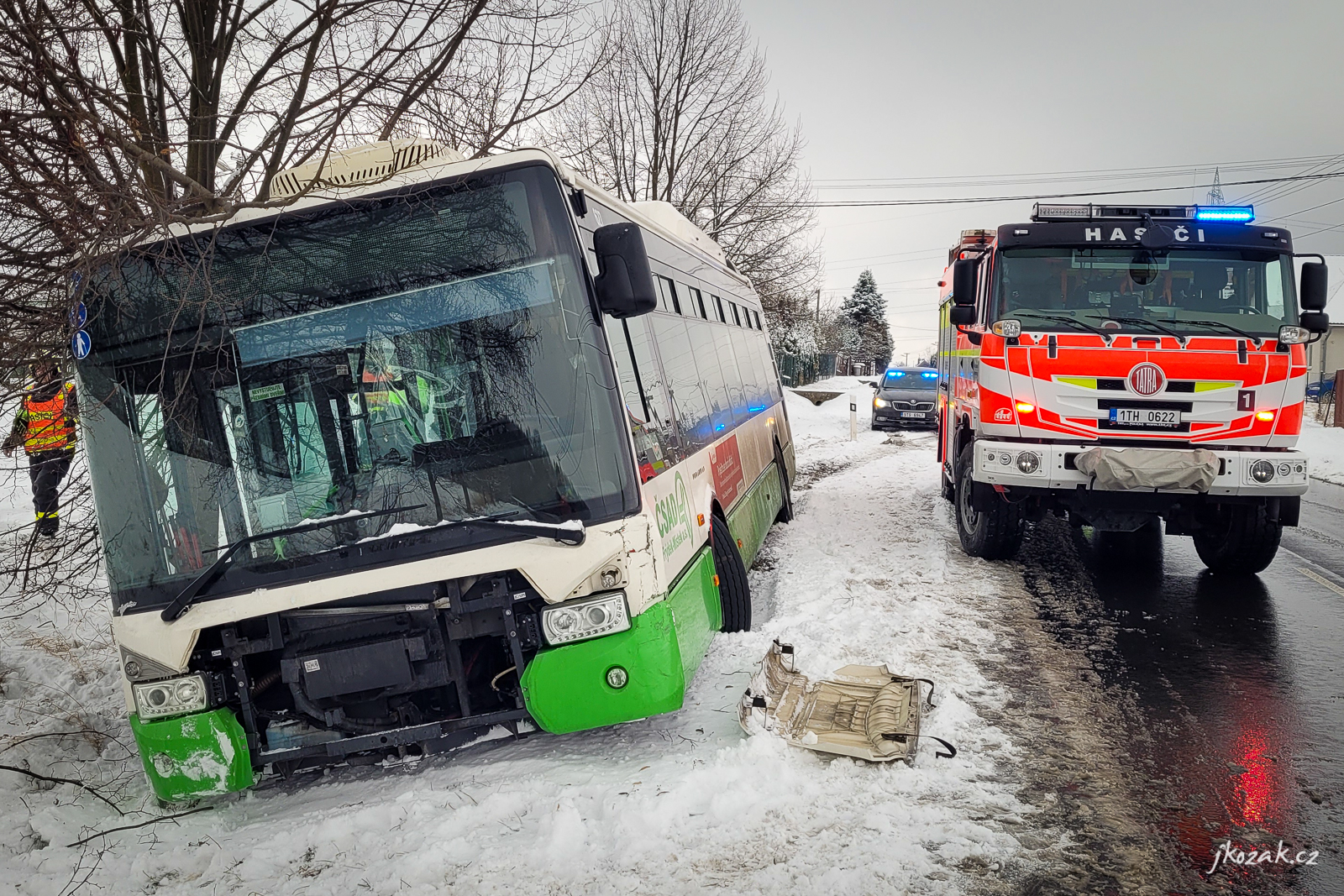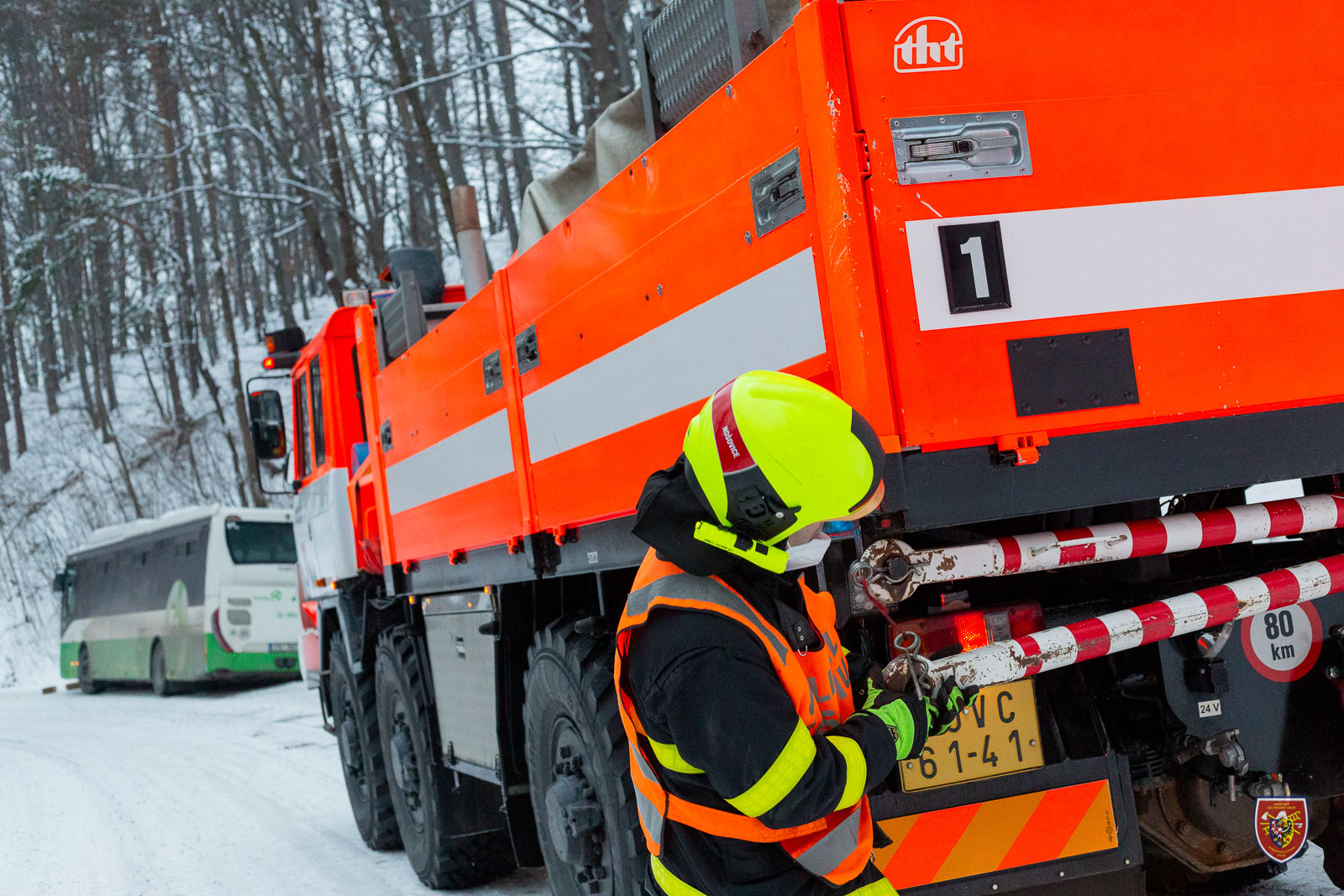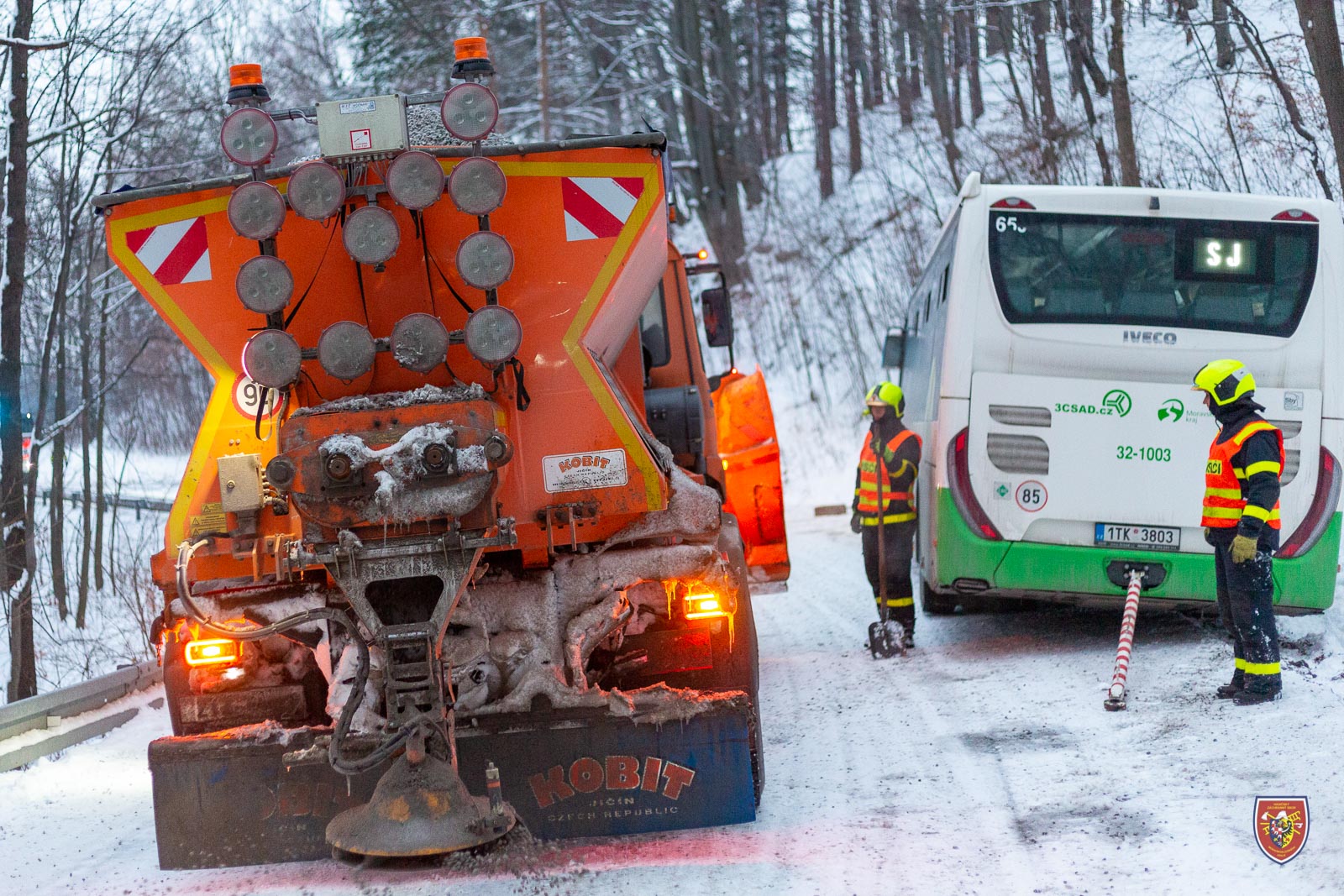 Podobně řešili zapadlý autobus o den dříve - tedy v sobotu 22. ledna 2022 - dopoledne hasiči v Lískovci. I tady pomohla okolo desáté hodiny vyprošťovací Tatra ze stanice HZS MSK Frýdek-Místek a i zde se nehoda obešla bez zranění.