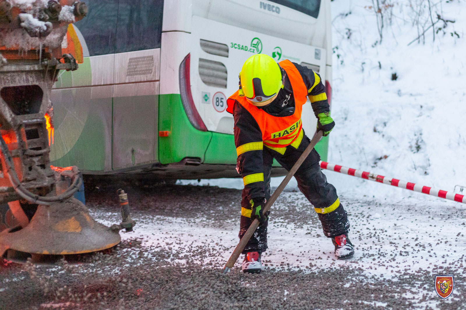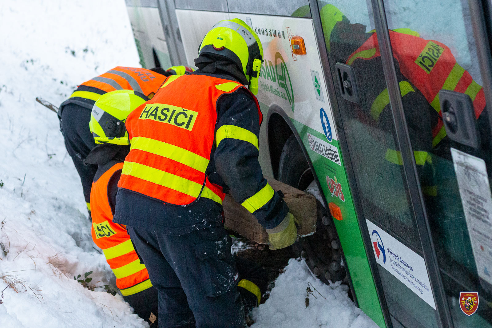 Zasahující jednotka si poradila pomocí pneumatických vysokotlakých zvedacích vaků. Těmi autobus nadzvedli, kámen odhrabali a vytáhli. Autobus pak mohl pokračovat v jízdě. Ani tento případ si nevyžádal žádné zranění.