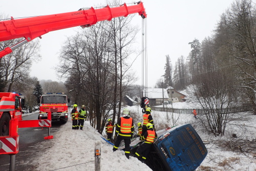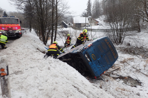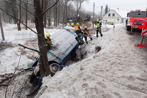 Tři jednotky hasičů zasahovaly v úterý 31.1.2017 ráno a dopoledne v Lomnici, místní části Tylov (okres Bruntál) u nehody dodávkového vozidla Mercedes Benz Sprinter, které skončilo v potoce, zaklíněné v dřevinách i dopravní značce. K vyproštění dodávky musela přijet těžká hasičská technika z Bruntálu a Opavy.