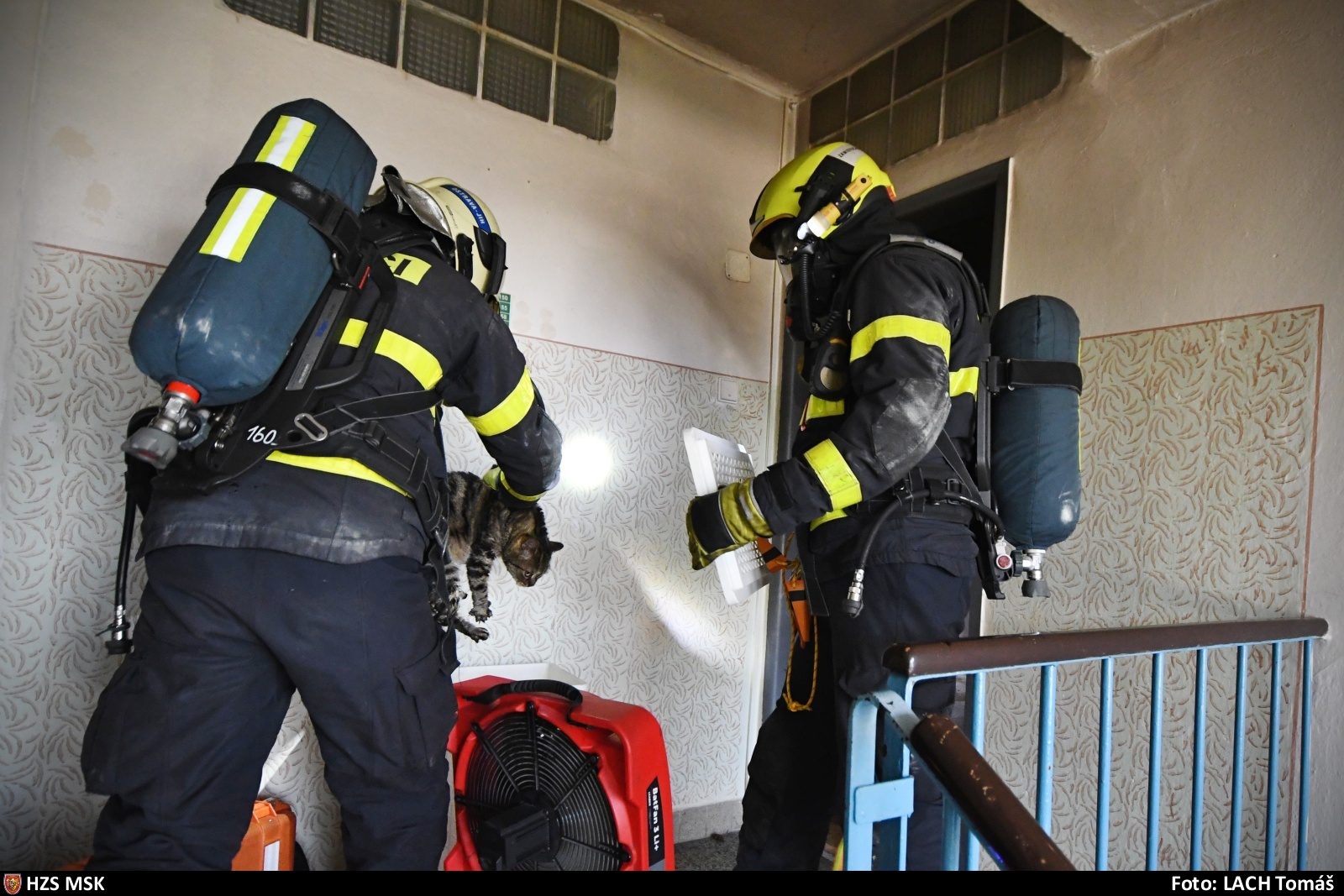 V sobotu 22.4.2023, krátce po půl jedenácté odpoledne, vyjely tři hasičské jednotky k požáru bytu v ostravské části Hrabová. Po příjezdu hasiči, ve spolupráci s již přítomnými policisty, vnikli do bytu a vytáhli muže, který se z bytu nestihl sám dostat. Hasiči také z bytu zachránili tři kočky.