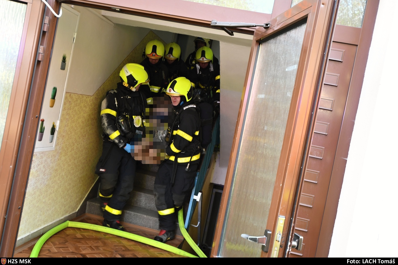 Hasiči již při příjezdu viděli vycházet černý dým z oken. Ihned vyběhli k bytu, kde už byli policisté, kteří v danou chvíli vyrazili dveře beranidlem. Hasiči vstoupili do bytu v dýchacích přístrojích, kde za dveřmi nalezli muže, kterému se nepodařilo před požárem utéci. Hasiči muže ihned vynesli ven, kde mu do příjezdu posádky záchranářů, poskytli předlékařskou pomoc. Díky rychlé a vynikající spolupráci hasičů a policistů, se podařilo muži zachránit život. Hasiči z bytu dále vytáhli i tři živé kočky.