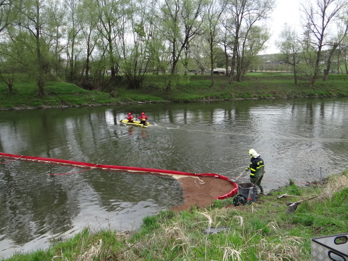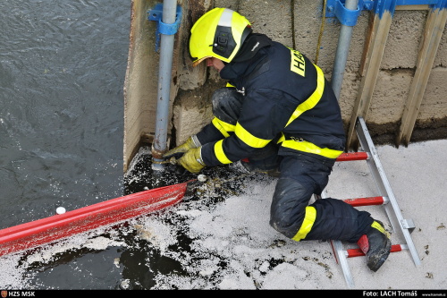 Ropnou látku, rozlitou po hladině řeky Odry u jezu ve Lhotce, zjistil pracovník státního podniku Povodí Odry v úterý ráno. Přivolaní hasiči začali ihned – na třech místech - v Ostravě-Lhotce (2), Ostravě-Hrušově (1) a Bohumíně (1) – stavět našikmo celkem čtyři norné stěny a doplňovat je speciálním nasákavým sorbentem, určeným pro vodní hladinu.
