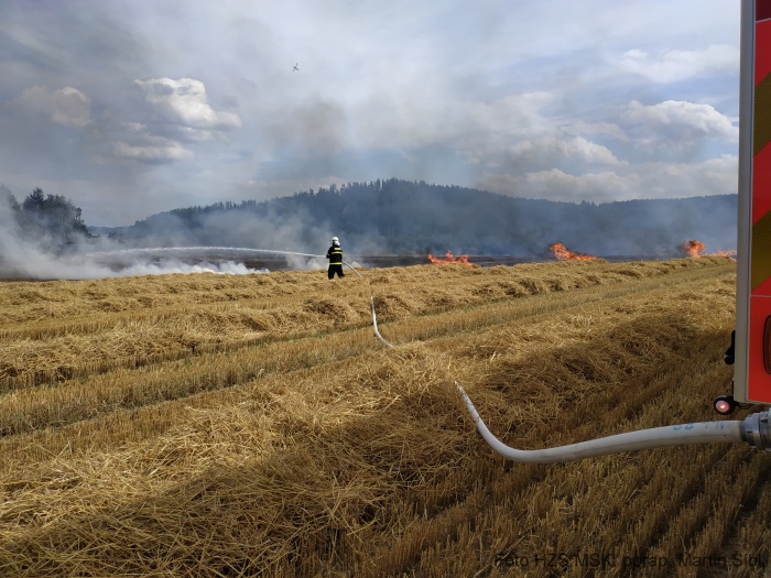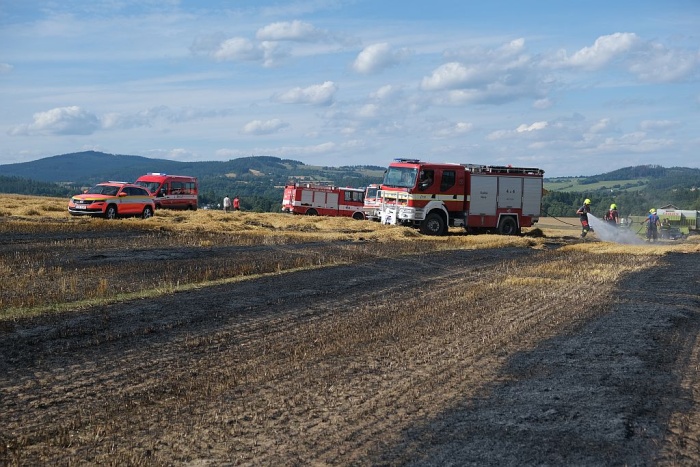 Operační středisko hasičů bylo o požáru pole informováno v pátek krátce po půl čtvrté odpolední. Do místní části Stará Rudná ihned vyrazila jednotka HZS Moravskoslezského kraje ze stanice Bruntál, společně s ní sedm jednotek dobrovolných hasičů - Dolní Moravice, Bruntál, Karlova Studánka, Světlá Hora, Andělská Hora, Vrbno pod Pradědem a Malá Morávka, celkem devět cisteren a dva dopravní automobily.