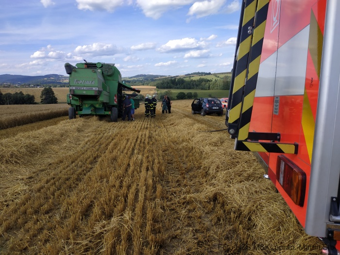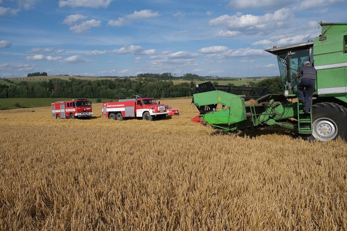 Starší kombajn zhruba za dva miliony korun uchránili před ohněm hasiči z Bruntálska (8 jednotek), kteří zasahovali u požáru vzrostlého ječmene a strniště na poli v Rudné pod Pradědem (okres Bruntál). Za požár mohlo nadměrné tření ložiska uvnitř kombajnu.