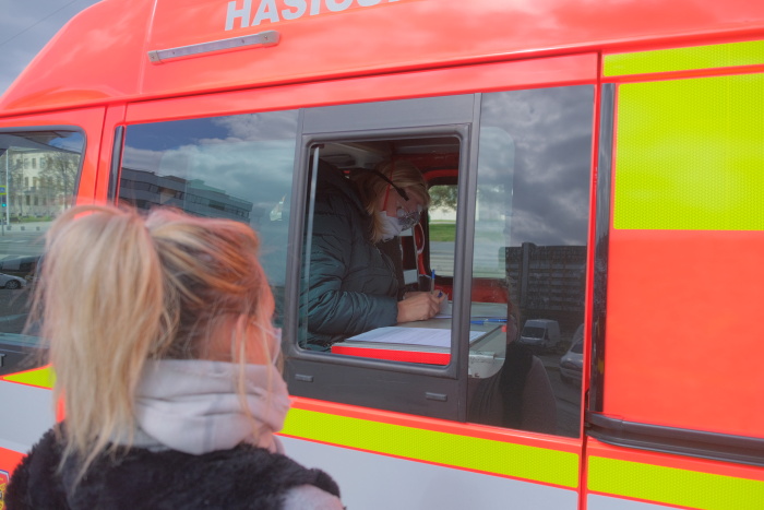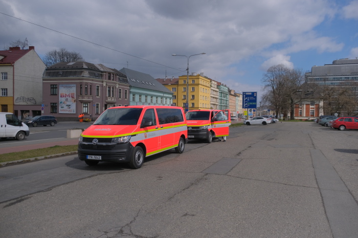 Pro komfortní práci střídajících se hygieniků uzpůsobili hasiči své mobilní operační středisko v užitkovém automobilu Ford přímo na parkovišti. V prvním případě (středa 26.3.) cestovatele ještě odváželi od železničního nádraží v Ostravě-Svinově velkým hasičským autobusem, ve zbývajících případech již od Domu kultury jedním či dvěma moderními vozidly VW Transporter.
