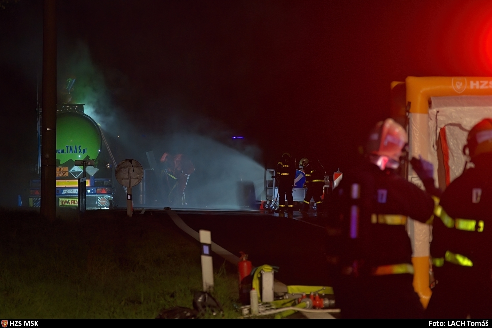 V poškozené cisterně bylo dle průzkumu více než 20 tun kyseliny. Prasklinu zasahující hasiči v protichemických oděvech utěsnili a pravidelně prováděli kontrolu těsnosti popřípadě uchycení ucpávky upravili.