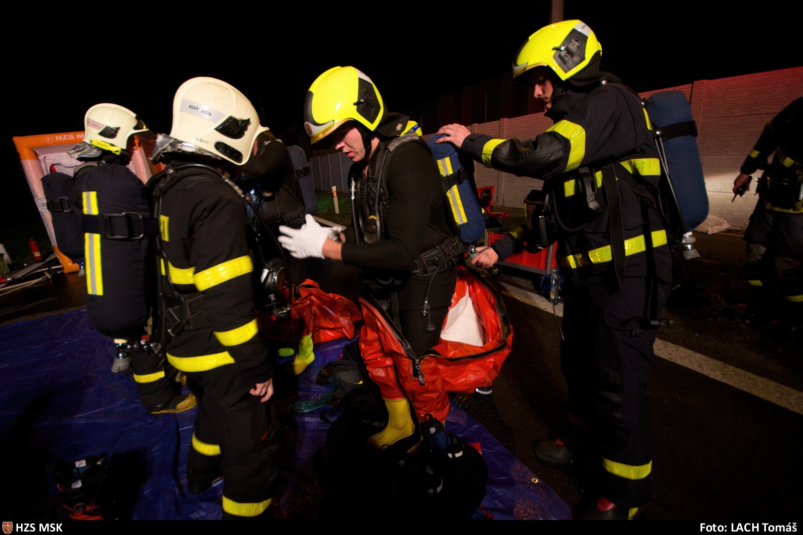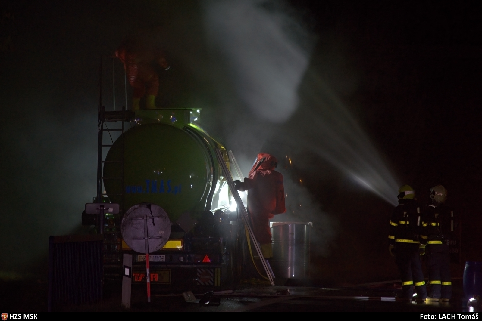 Událost byla na tísňovou linku ohlášena patnáct minut po šestnácté hodině odpoledne, k zásahu byla v první fázi vyslána jednotka ze stanice HZS Moravskoslezského kraje v Novém Jičíně, dále operační středisko vyhlásilo poplach hasičům ze stanic HZS MSK Kopřivnice, Ostrava-Fifejdy, Ostrava-Zábřeh, Ostrava-Přívoz, chemické laboratoře ve Frenštátu pod Radhoštěm a dobrovolným hasičům obcí Frenštát pod Radhoštěm, Fulnek, Kopřivnice, Sedlnice, Slatina, Starý Jičín, Studénka a Štramberk.