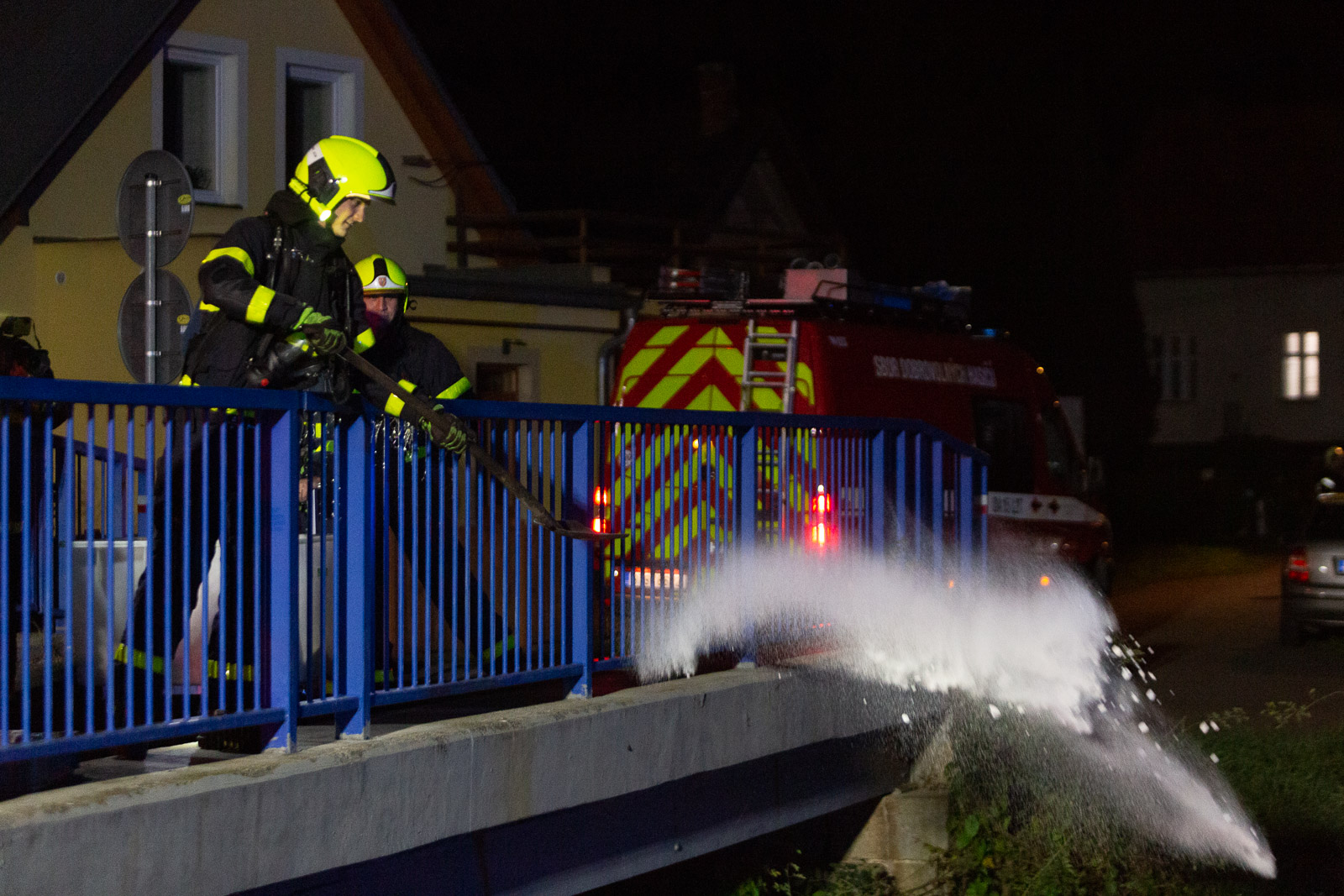 Varování obyvatelstva prováděli jak hasiči mobilní sirénou, tak místní samospráva rozhlasem.