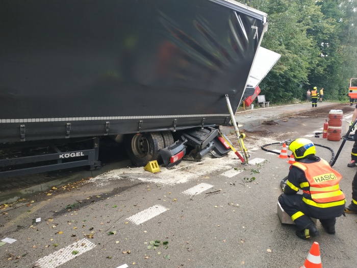 To u nehody v Bohumíně (okres Karviná) unikala z kamionu nafta i motorový olej. Do Skřečoně na silnici I/67 vyjely čtyři jednotky HZS MSK – ze stanic Bohumín, Karviná, Orlová a Ostrava-Zábřeh, odkud mj. přijel vyprošťovací speciál MB Actros Bizon a sorbentový kontejner.