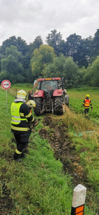K odtažení pomohl hasičské technice traktor kolegy, pomocí nichž byl havarovaný Case odtažen na bezpečnou rovinku na poli. Během vyprošťování ho řídil zkušený hasič. Vyprošťování nezabralo ani hodinu. Únik provozních kapalin nezaznamenán.