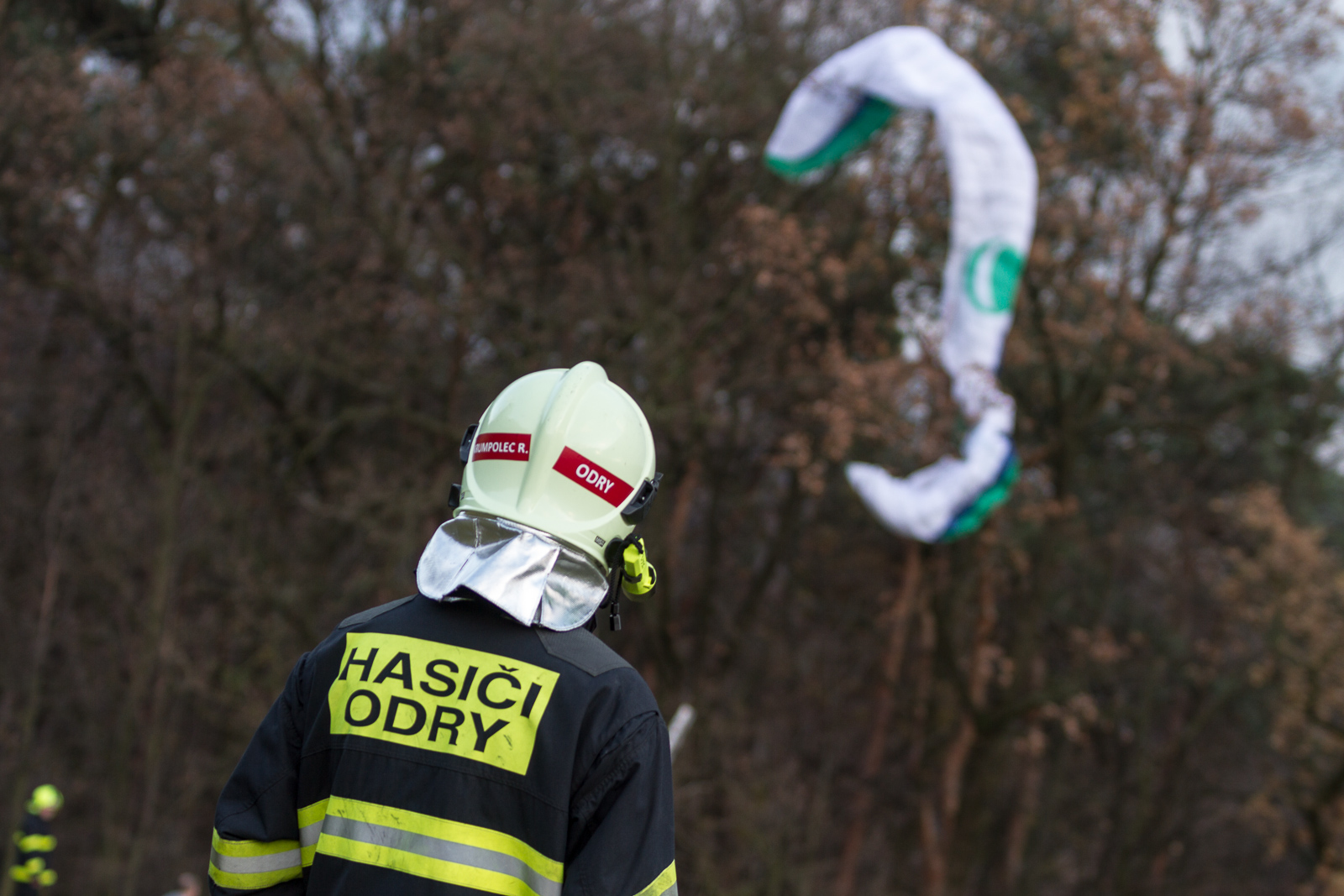 Hasiči v Odrách zachránili paraglidistu, ze stromu mu pomohli po žebříku