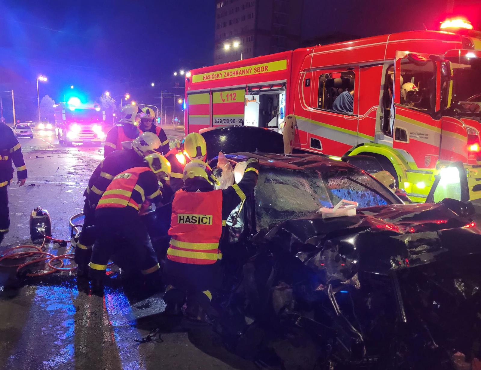 Hasiči v Ostravě vyprošťovali jednu osobu po noční dopravní nehodě