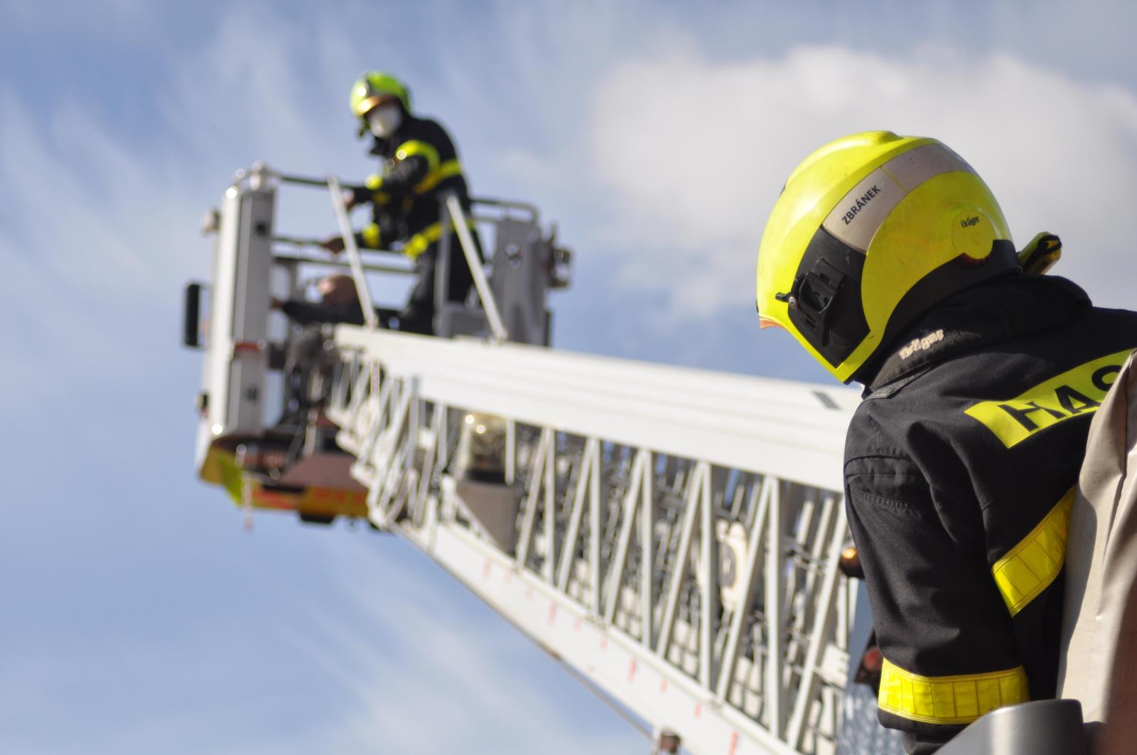 Hasiči v Ostravě zachránili automobilovým žebříkem dělníka ze střechy autoservisu