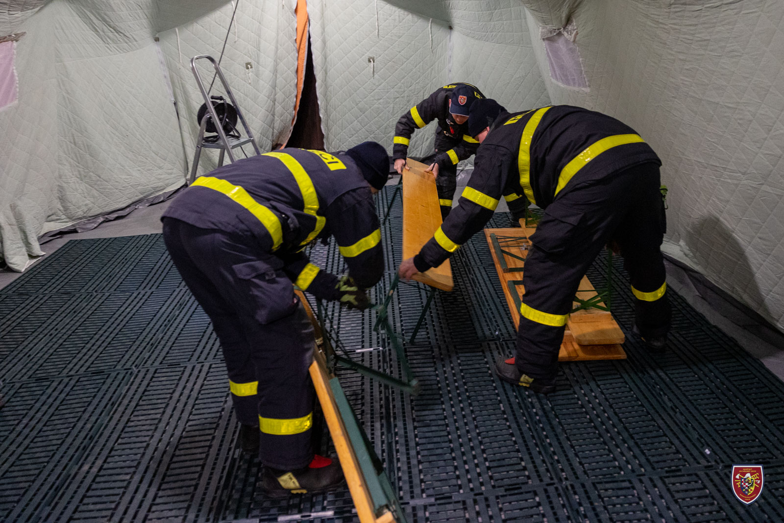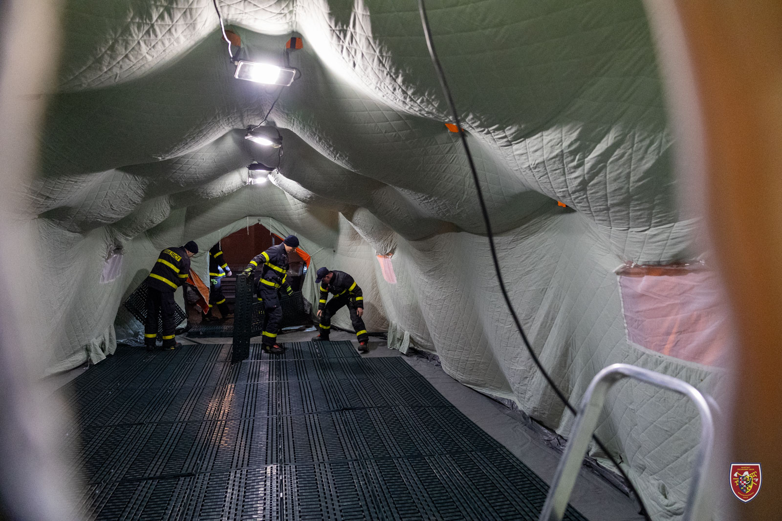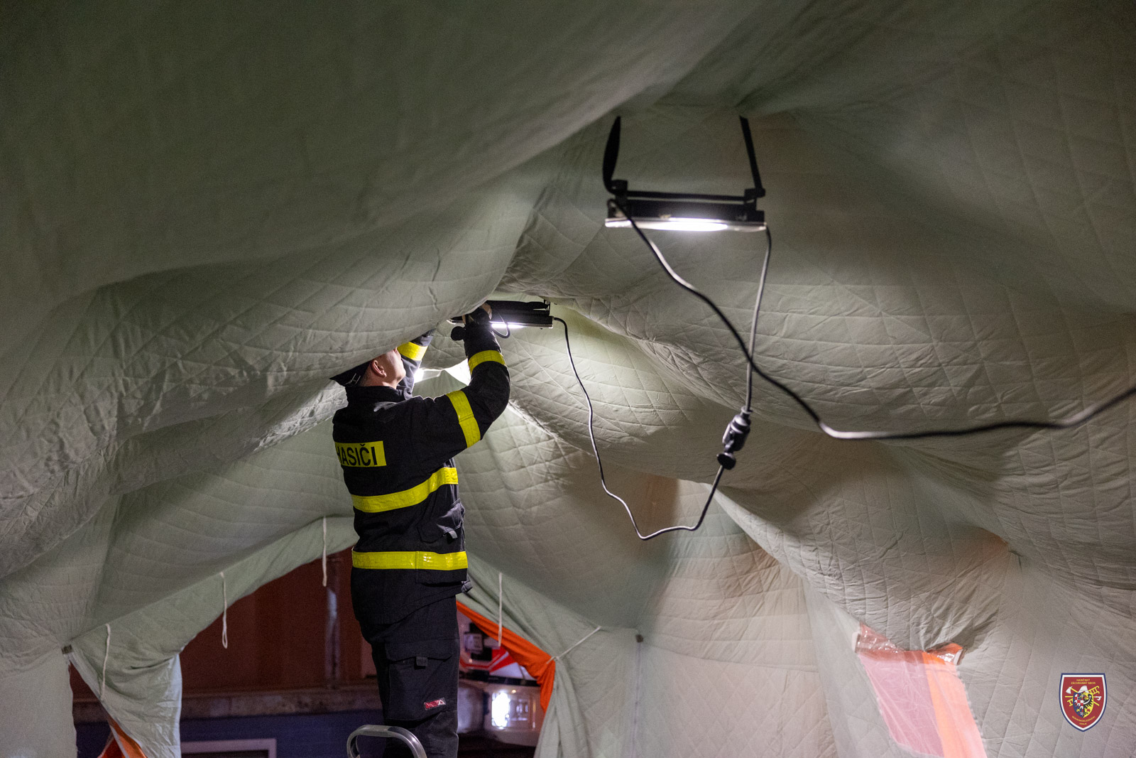 Hasiči v okresních městech připravili nafukovací stany pro volbu prezidenta republiky