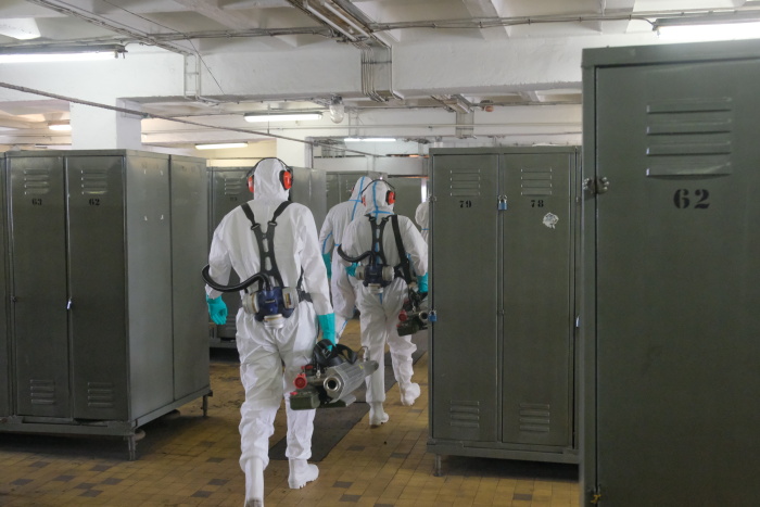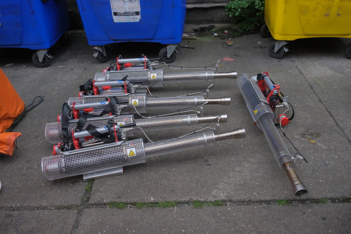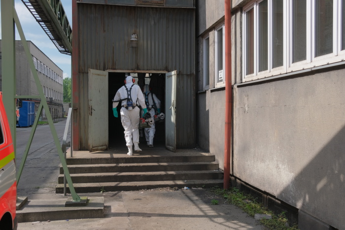 Dvě desítky profesionálních hasičů (HZS MSK) s šesti osvědčenými generátory teplého desinfekčního aerosolu („vuvuzelami“) se...