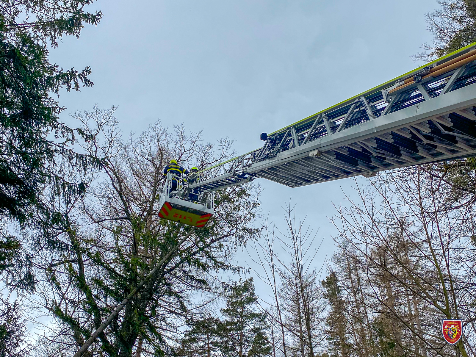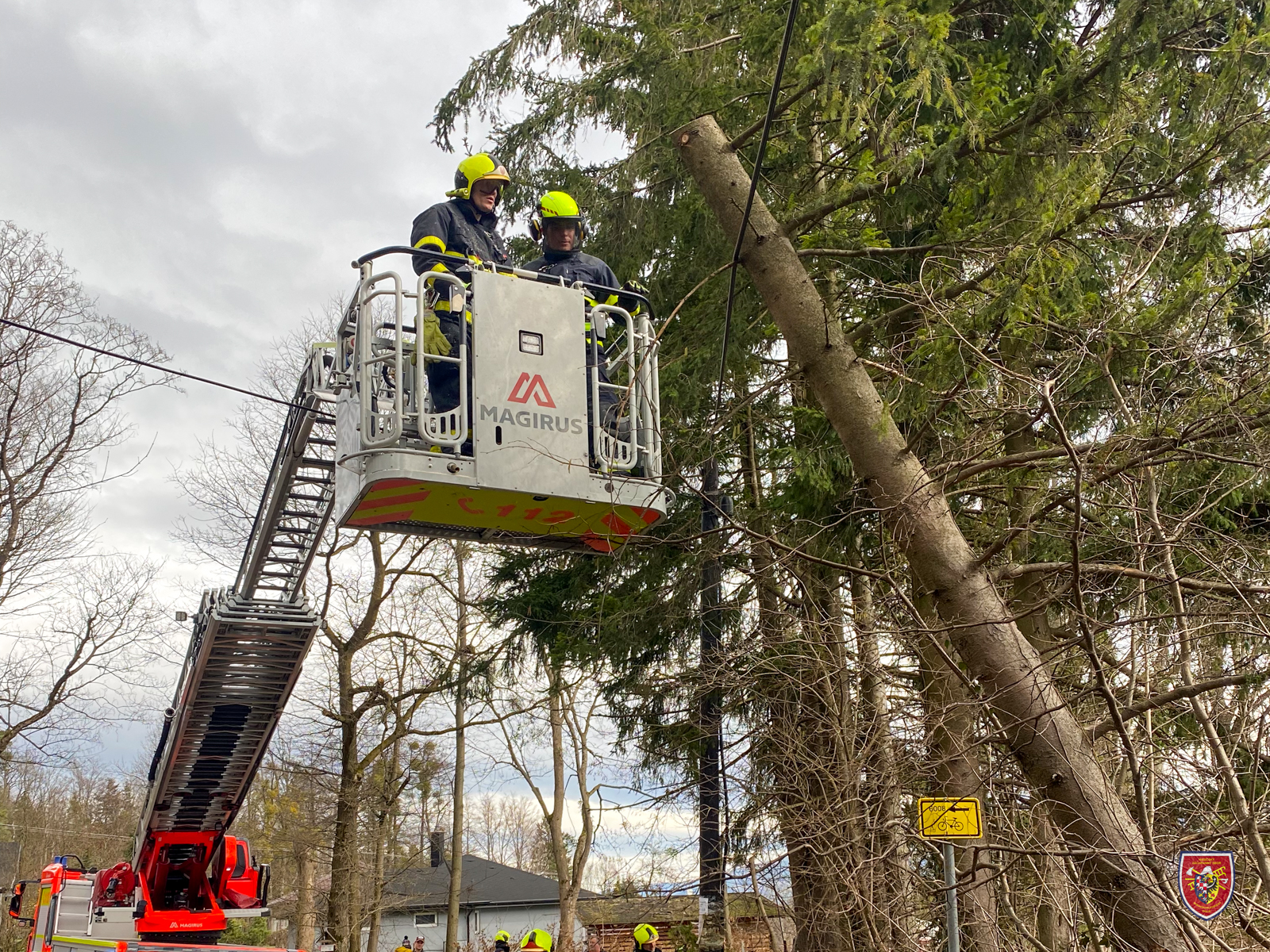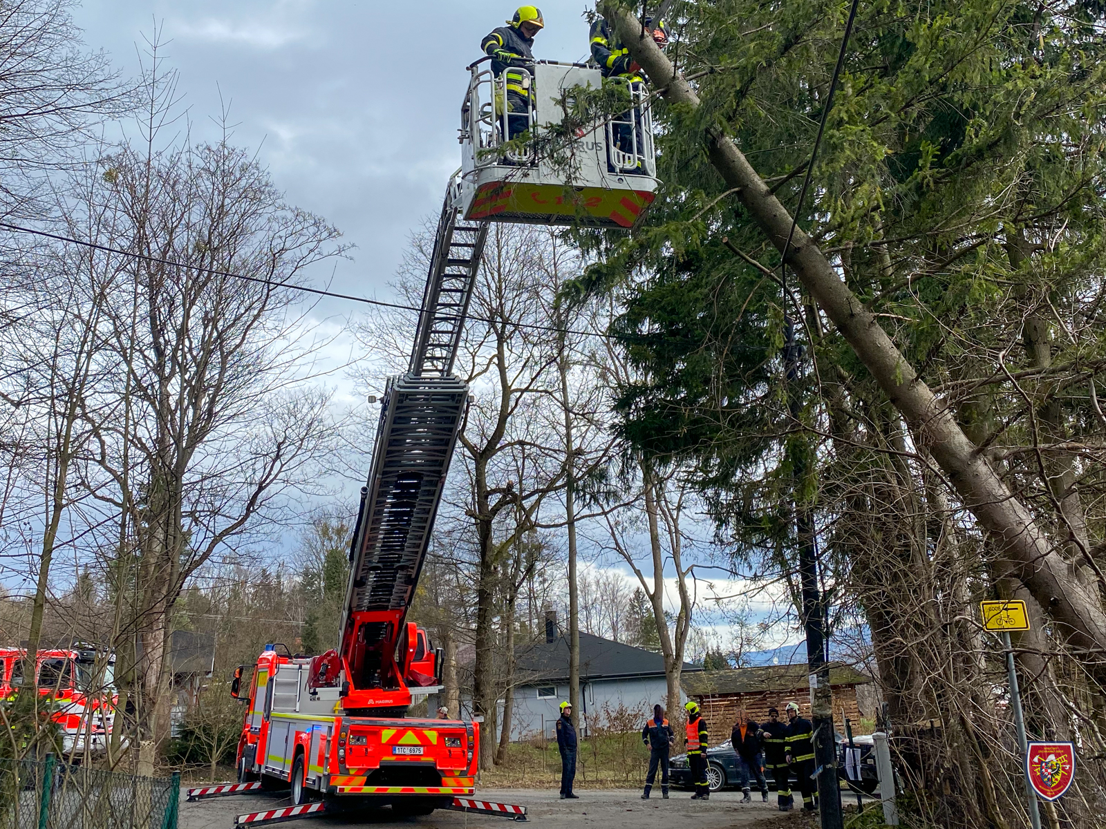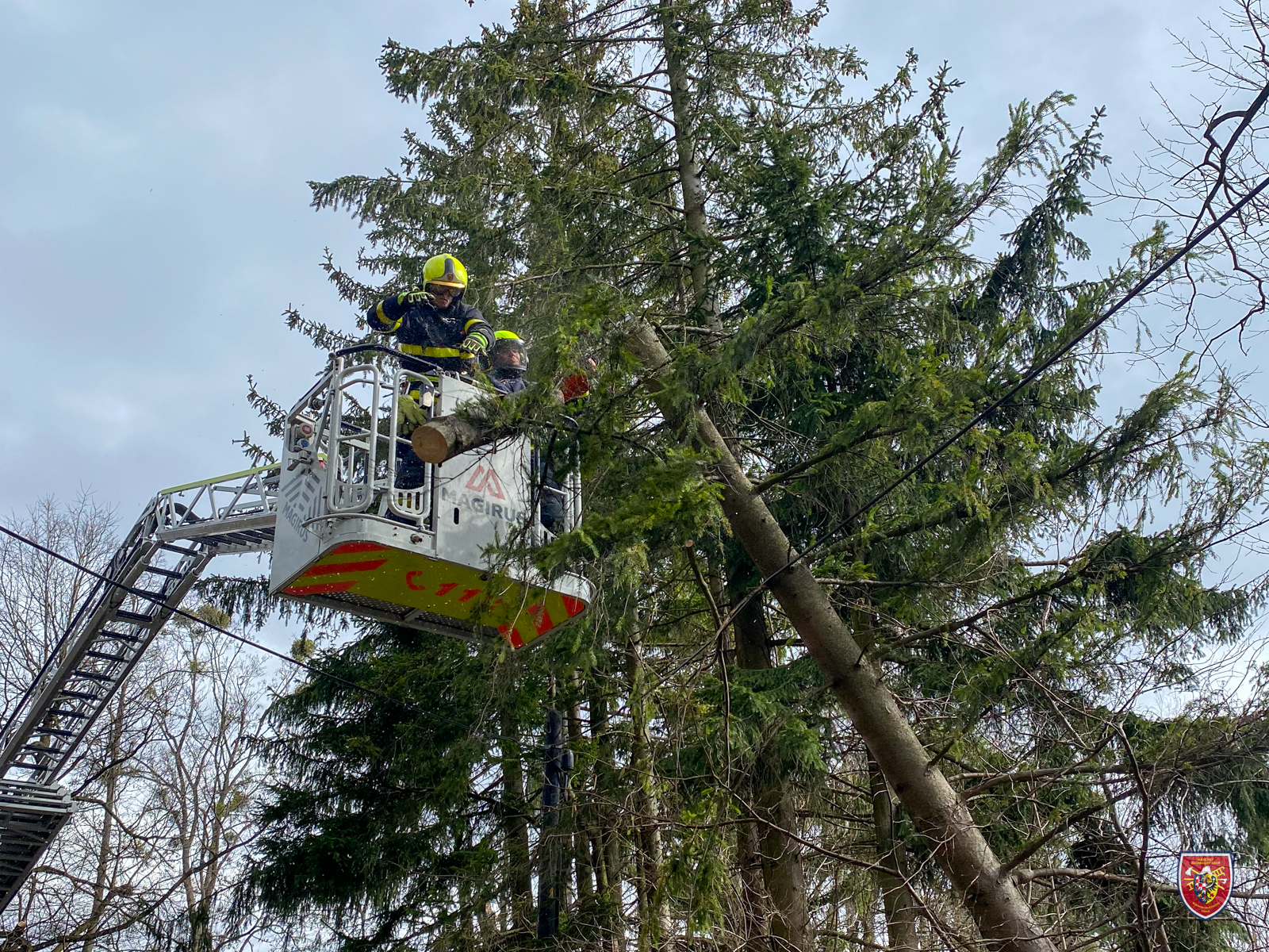 V obci Čeladná spadl strom na telefonní drát, na kterém zůstal viset. Při jeho odstranění bylo nutné povolat do zásahu i automobilový žebřík, pomocí kterého hasiči strom odstranili.