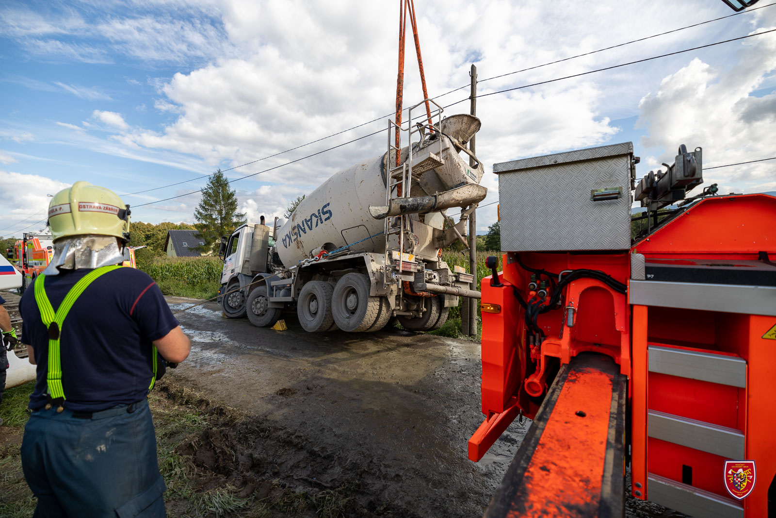 Krajské operační středisko hasičů obdrželo informaci o nehodě domíchávače v katastru obce Hnojník v pátek 23.9.2022 v 11:14 hod. Na místo vyrazili profesionální hasiči ze stanice v Nošovicích, následně si velitel zásahu povolal těžkou vyprošťovací techniku ze stanice Ostrava-Zábřeh.