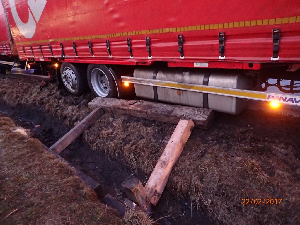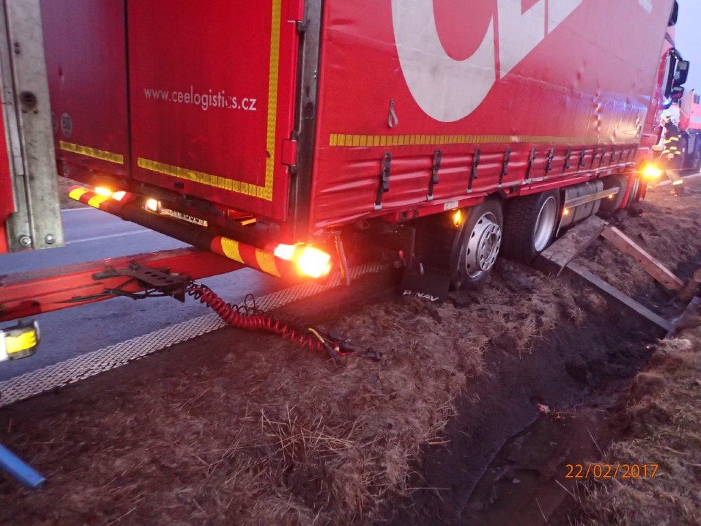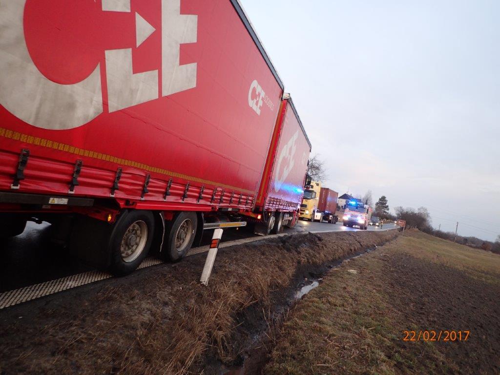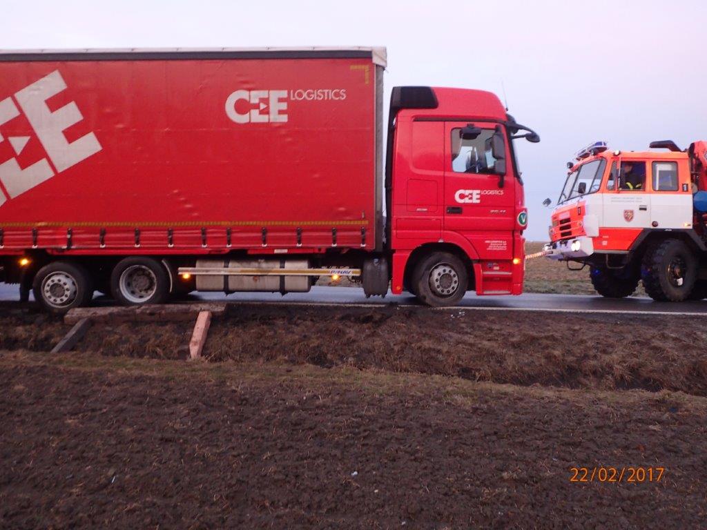 Při vyprošťování nákladního automobilu Mercedes s přívěsem z příkopu v Kopřivnici-Vlčovicích zasahovaly dvě jednotky - HZS MSK ze stanice Nový Jičín dvěma vozidly, včetně vyprošťovacího automobilu na podvozku Tatra 815, a jednotka SDH Kopřivnice.
