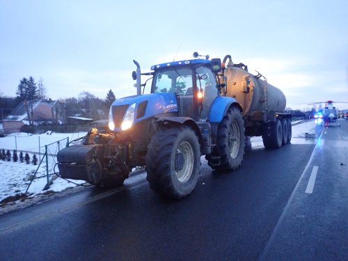 Podle Policie ČR řidič fiatu z dosud nezjištěných příčin narazil zezadu do traktoru s cisternou (přívěs) a skončil mimo silnici. Hasiči zabezpečili havarovaná vozidla před případným požárem a opatrně vyprostili obě osoby z fiatu.