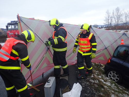 Dvě jednotky hasičů zasahovaly ve středu 24.1.2018 ráno v obci Třemešná, místní části Rudíkovy (okres Bruntál) u nehody osobního automobilu Fiat Multipla se zemědělským traktorem New Holland, který táhl v cisterně 25 tisíc litrů kapalného výpalku z lihovaru. Hasiči museli vyprostit zraněného řidiče fiatu (54 let) i jeho spolujezdce (52 let), který nehodu nepřežil.