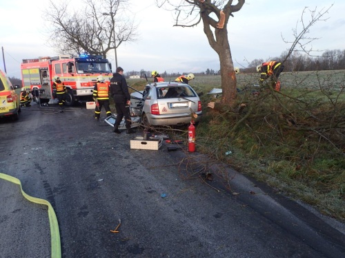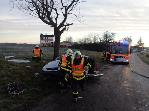 Dvě jednotky profesionálních hasičů (HZS MSK) zasahovaly ve středu 3.1.2018 ráno v obci Ludgeřovice (okres Opava) u nehody osobního automobilu Škoda Fabia Combi. Hasiči museli opatrně vyprostit z havarovaného auta zraněnou řidičku, a to pomocí hydraulických nástrojů. Předali ji týmu ZZS MSK a nakonec ji odnesli do vrtulníku LZS. Fabii nakládali na vozidlo odtahové služby.