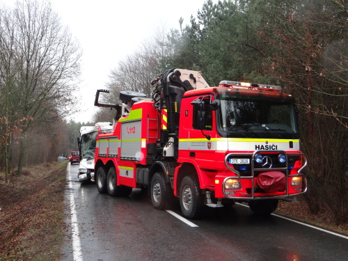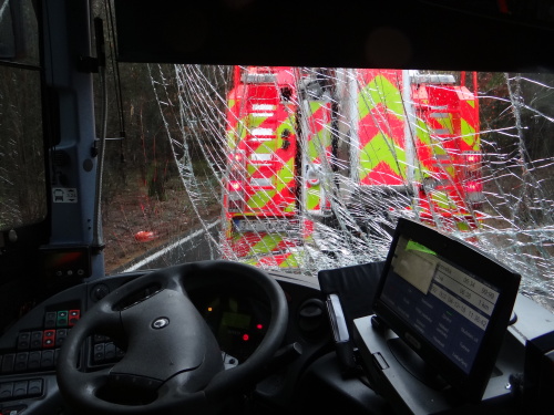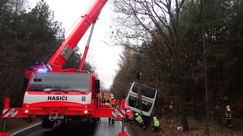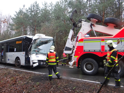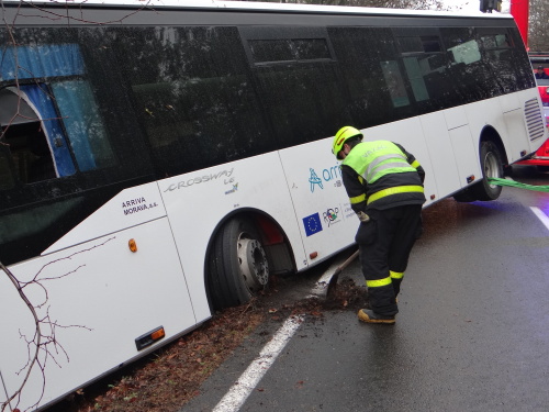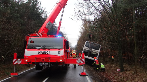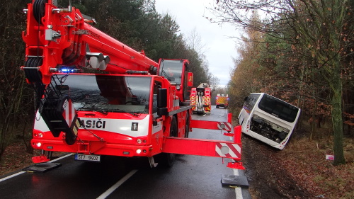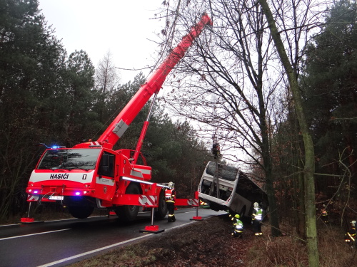 Tři jednotky profesionálních hasičů (HZS MSK) zasahovaly celé úterní dopoledne , 4.12.2018, u nehody meziměstského autobusu Iveco (Irisbus) Crossway, který skončil v příkopu a stromu na silnici mezi obcemi Píšť a Chuchelná (okres Opava). Hasiči museli přes pravé boční okno, které prořezali, vyprostit celkem šest osob. Zranění utrpěl řidič a další tři dospělé osoby.