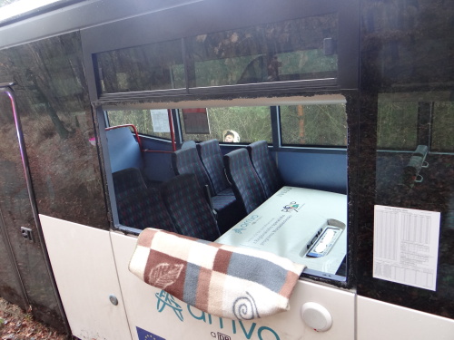 Autobus, který měl všechna čtyři kola v pořádku (i díky opatrné a pečlivé práci hasičů), se na silnici dokonce podařilo nastartovat. Jeden z hasičů si sedl za volant, autobus byl připojen tažnou tyčí k Bizonu a ten jej pomalu odtáhl až na odstavnou plochu v obci Chuchelná, kde byl přesně v úterní poledne předán zástupci dopravní firmy.