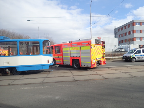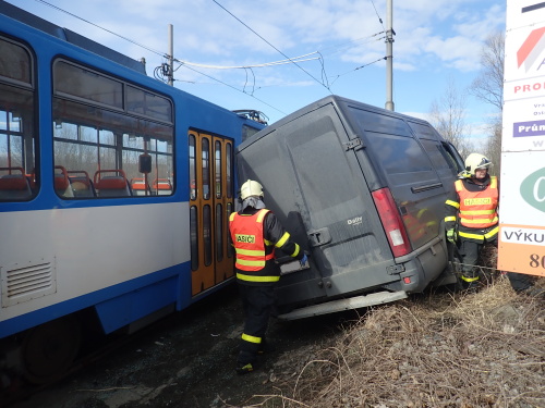 Dvě jednotky hasičů zasahovaly v pondělí 12.3.2018 odpoledne v Ostravě-Kunčičkách u nehody tramvaje s užitkovým vozidlem Iveco Daily na křižovatce Lihovarské a Vratimovské ulice. Hasiči museli z kabiny opatrně vyprostit zraněného a zaklíněného řidiče Iveca středního věku, v tramvaji nebyl nikdo zraněn. Také odtáhli havarované užitkové vozidlo mimo silnici.