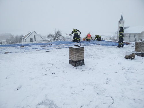 V Darkovicích tak pomáhala jednotka HZS Moravskoslezského kraje ze stanice Hlučín a místní jednotka dobrovolných hasičů (Darkovice). Před provizorním přikrytím poškozené části 6 plachtami museli hasiči celou střechu (asi 15 x 10 metrů) očistit od silné vrstvy sněhu.