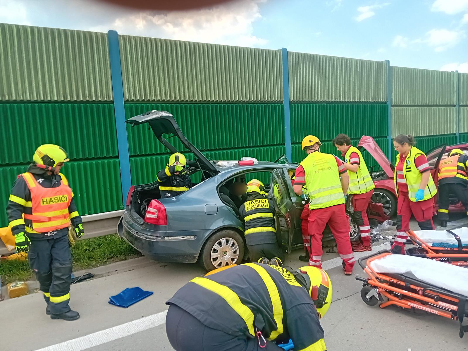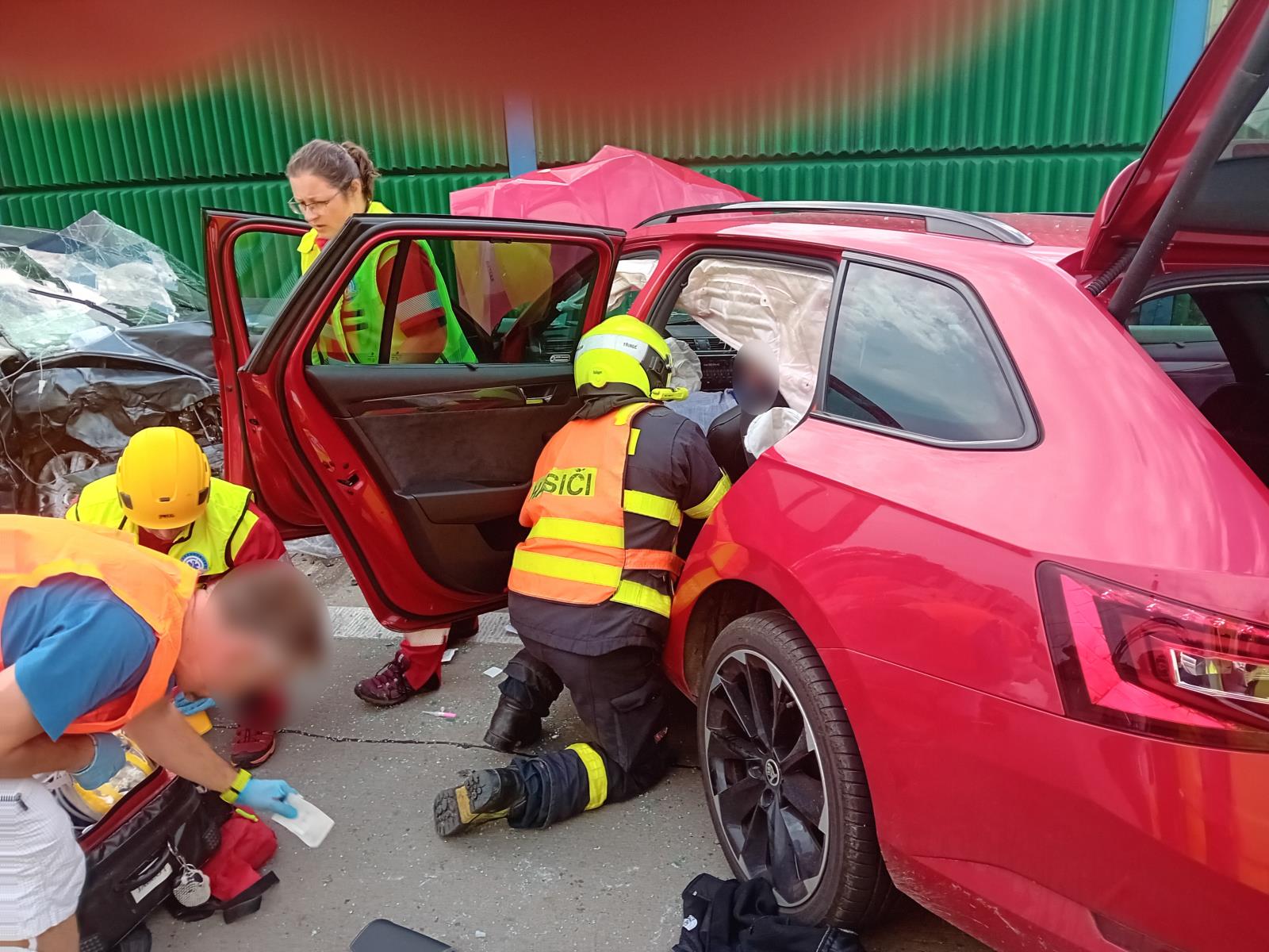 Tři muže museli hasiči vyprostit, v úterý 9.7.2024, pomocí hydraulického vyprošťovacího nářadí při nehodě tří osobních a jednoho nákladního vozidla. Na místě zasahoval i vrtulník záchranářů, který přepravil jednu zraněnou osobu do nemocnice.