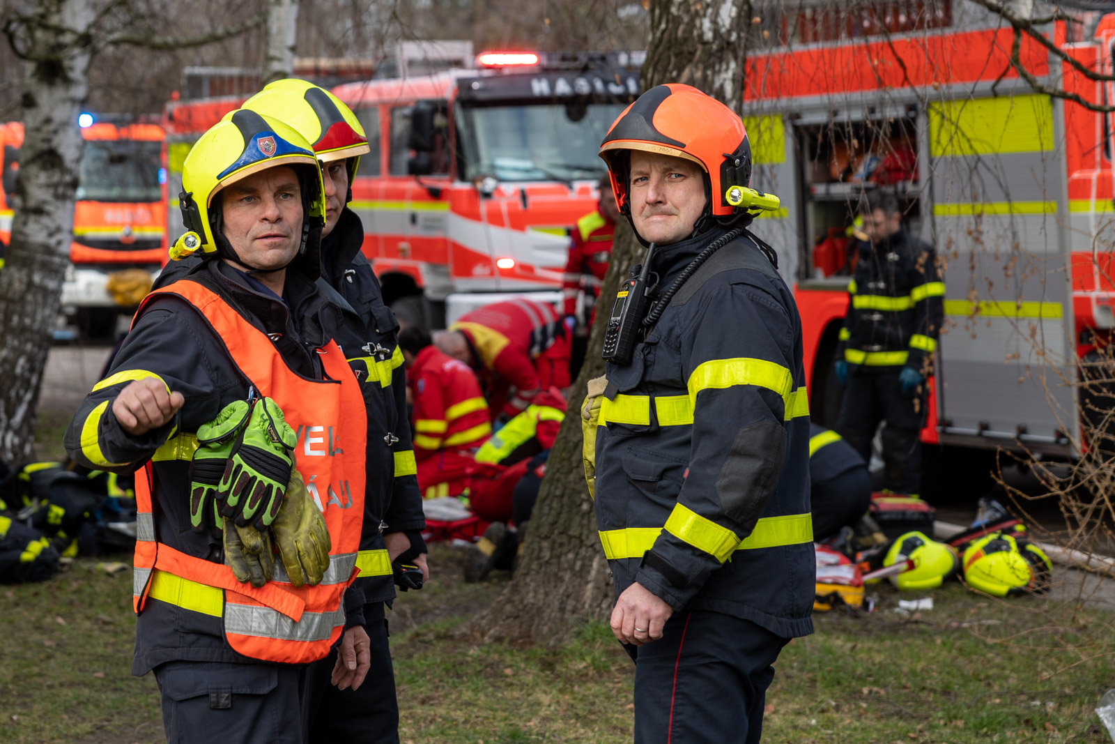 Hasiči po příjezdu k zásahu v dýchací technice s termokamerou a vodním proudem násilně vnikli do zakouřeného bytu, kde po krátkém průzkumu nalezli tři osoby - ženu a dvě děti.
