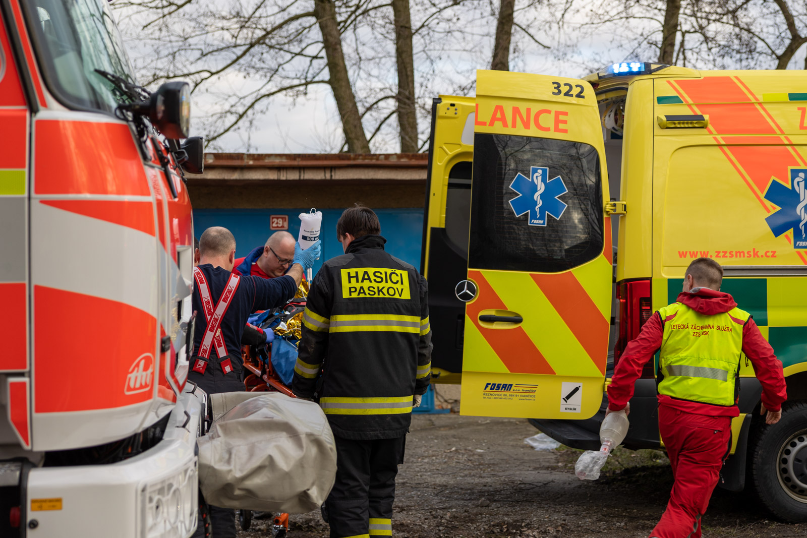 Ženu vyvedli z domu po schodech, obě děti vynesli ven v náručí. U jednoho z nich ihned zahájili nepřímou srdeční masáž, využili i automatizovaný externí defibrilátor. Na resuscitaci následně spolupracovali se zdravotníky, lékař však po dlouhé snaze o záchranu konstatoval smrt.