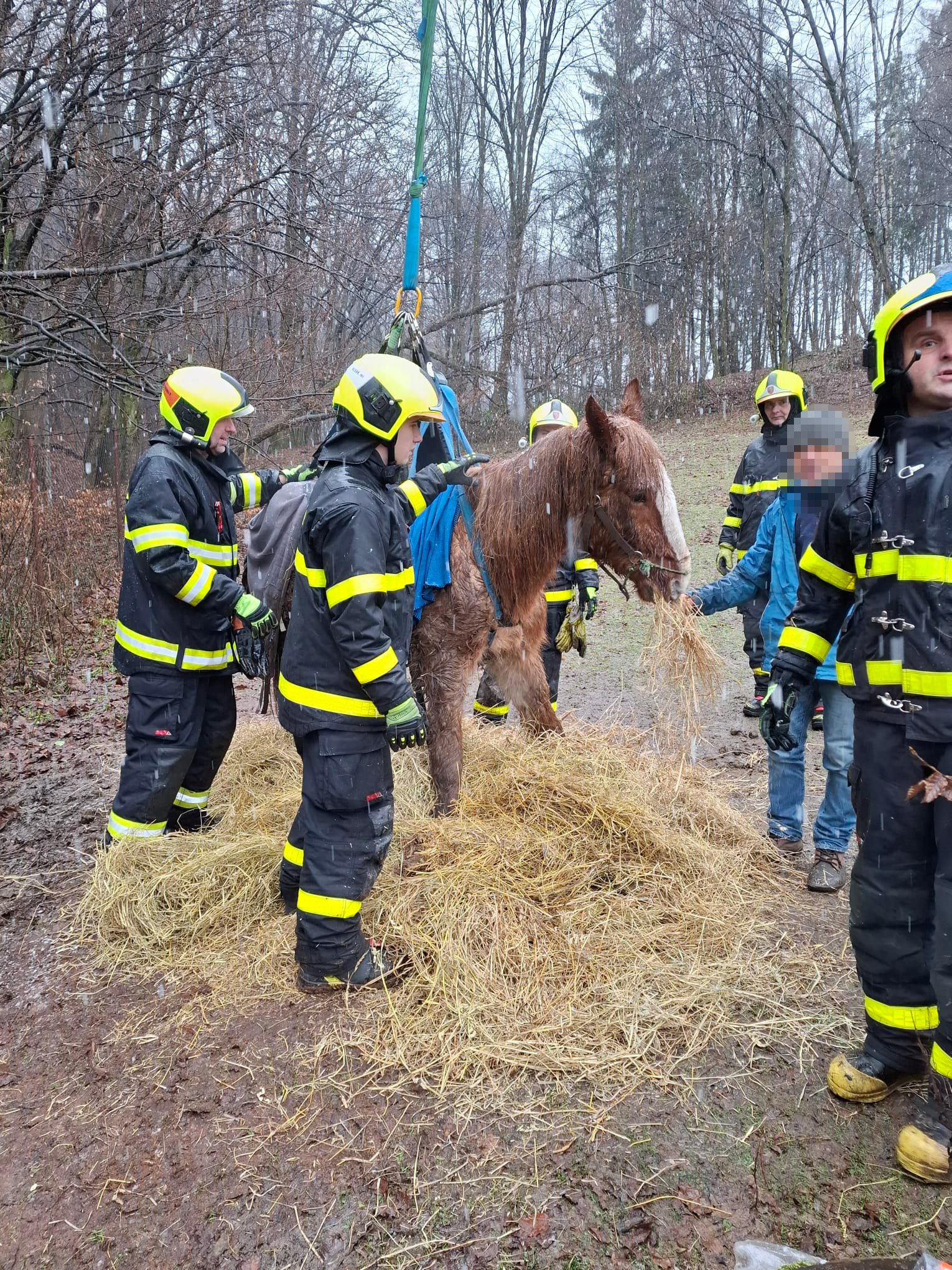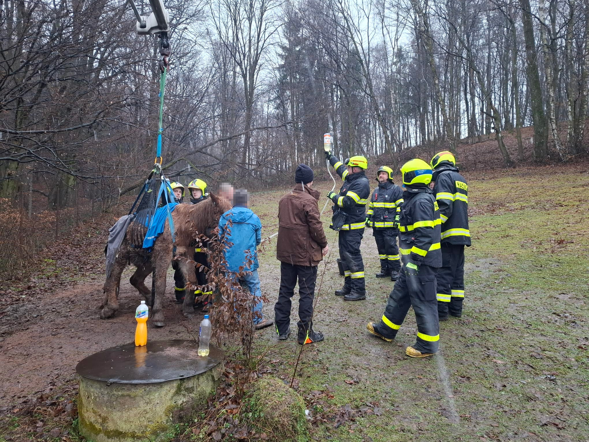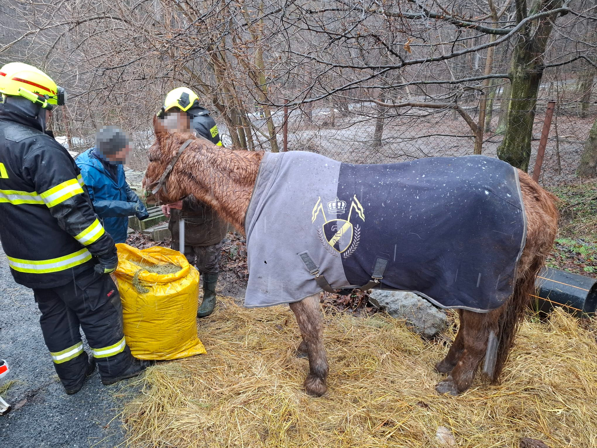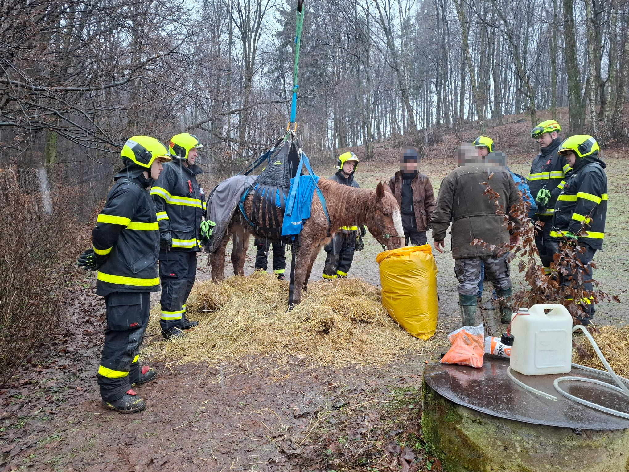Na místě byl přítomen jak majitel kobyly, do jehož péče bylo zvíře po úspěšném zvednutí vráceno, tak i veterinář. (KL)