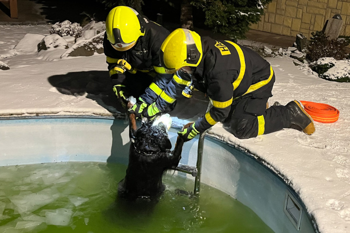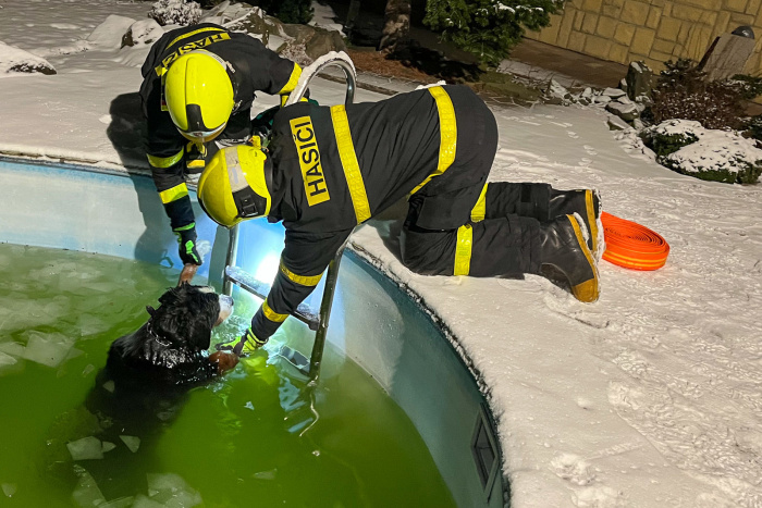 Pes v nejlepších zvířecích letech utekl kolem sobotní 21. hodiny od „svého“ rodinného domu k sousedům naproti přes ulici, kde se propadl na zahradě do bazénu s tenkou vrstvou ledu, který se pod ním samozřejmě pěkně probořil. Marně se pokoušel dostat zpět nahoru přes hradbu kluzkých namrzlých stěn.