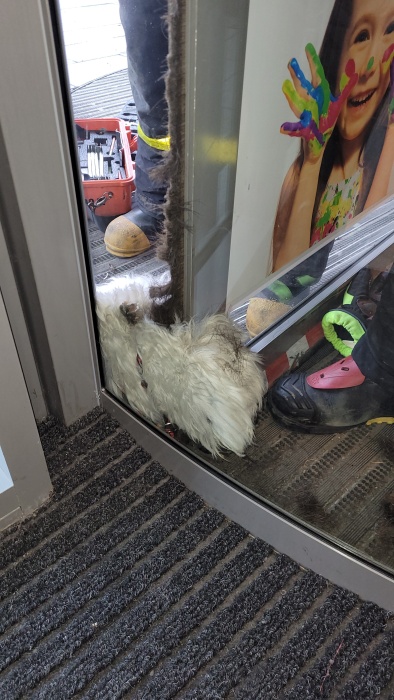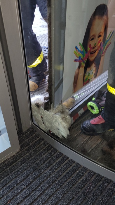 Profesionální hasiči z Opavy (HZS MSK) úspěšně zachránili v úterý 8.2.2022 odpoledne malého bílého chlupatého psa, který se zasekl ve vstupních otáčecích dveřích obchodního domu v centru Opavy. Jeho hendikepovaná majitelka mu nedokázala pomoci.