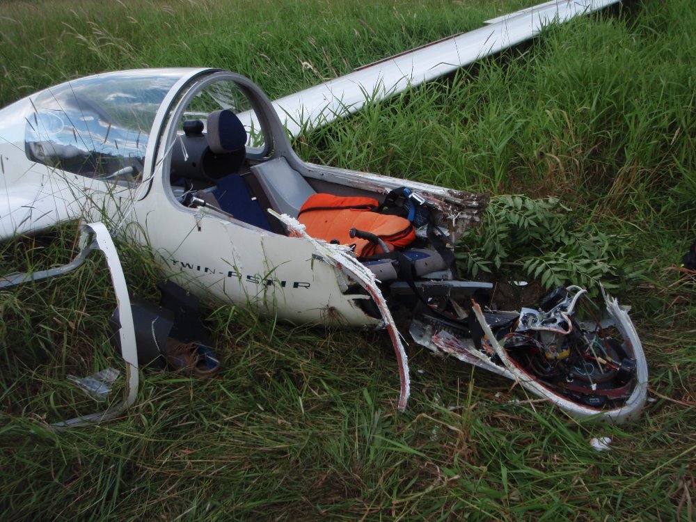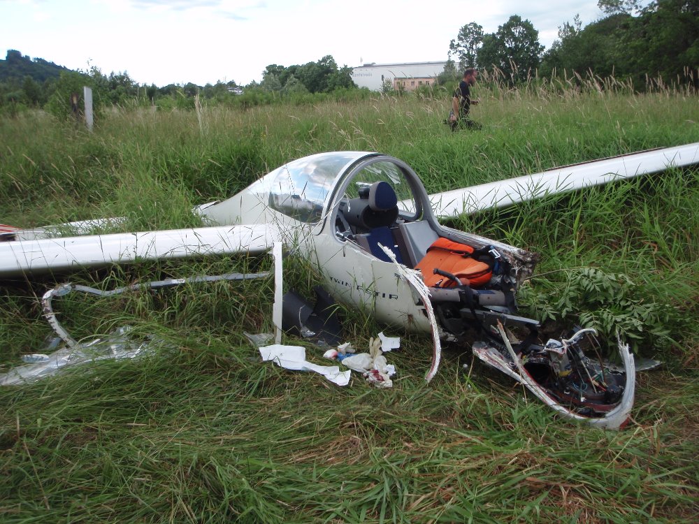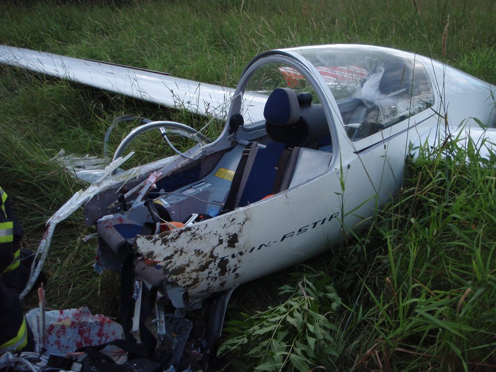 Větroň ležel podle zasahujících hasičů v hluboké trávě, muž (ročník 1969) měl při jejich příjezdu odepnuty bezpečnostní pásy, byl při vědomí a komunikoval. Hasiči jej opatrně zvedli ze sedadla, položili na páteřní desku a přenesli na přístupné místo, vhodné k jeho ošetření. Podle hasičů měl otevřenou zlomeninu kotníku a zranění v obličeji.