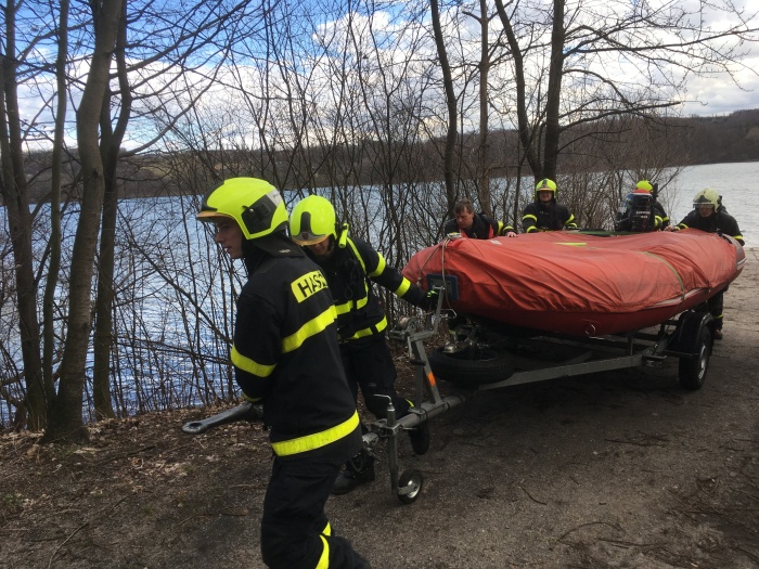 Ke břehu přehrady dorazily dvě jednotky Hasičského záchranného sboru Moravskoslezského kraje (HZS MSK – stanice Havířov a Karviná) i s nafukovacími čluny a také jednotka dobrovolných hasičů Těrlicko ve čtvrtek krátce po druhé hodině odpolední. Kvůli vysokým vlnám bylo seniora uprostřed vlnobití velmi obtížné sledovat i hasičským dalekohledem, aby se neztratil z dohledu.