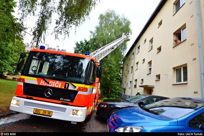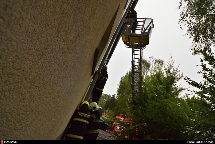- Ostrava-Hrabůvka, ul. Zlepšovatelů - zatékání do bytů, ucpané svody, hasiči je vyčistili (jednotka HZS MSK ze stanice Ostrava-Zábřeh i s automobilovým žebříkem).