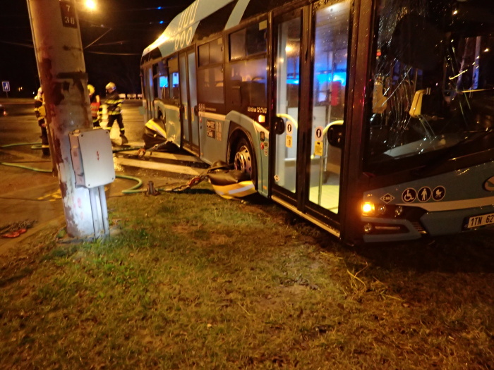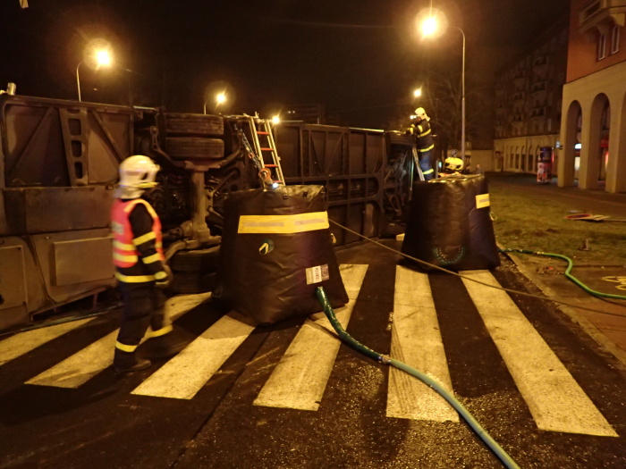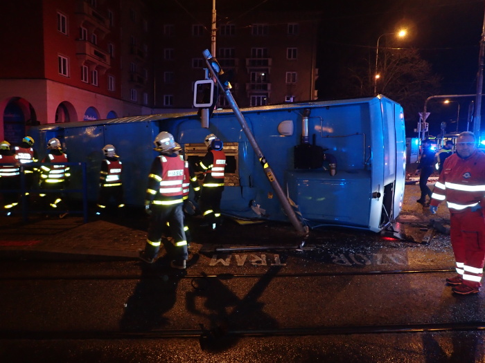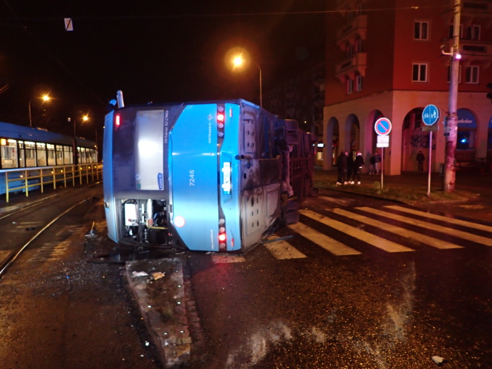 Dvě jednotky profesionálních hasičů (HZS MSK) zasahovaly v noci ze čtvrtka na pátek 13.3.2020 u nehody linkového autobusu a kamionu v Ostravě-Porubě na křižovatce Opavské ulice a ulice 17. listopadu, která si vyžádala méně závažná zranění řidiče autobusu a jeho jediné cestující. Autobus skončil na levém boku, hasiči jej dostali zpět na kola pomocí vyprošťovacího speciálu Bizona a velkých zvedacích nafukovacích vaků.