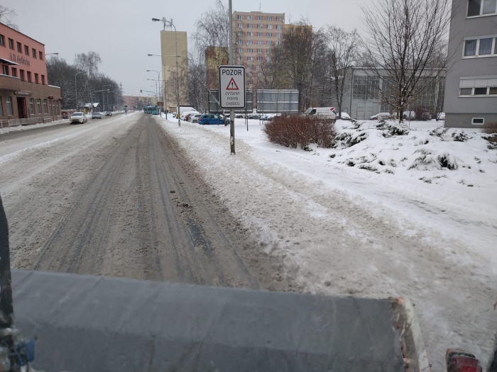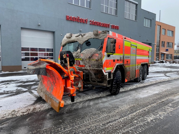 Dvě cisternové automobilové stříkačky Tatra (CAS) ze dvou ostravských stanic HZS Moravskoslezského kraje, osazené radlicí, odhrnovaly během pondělního dopoledne 8.2.2021 sníh z dálnice D48 v úseku od Českého Těšína až k jihozápadní hranici s Olomouckým krajem na Novojičínsku. Jedna z nich ještě projížděla úsek z Příbora kolem Mošnova až do Ostravy-Jihu (I/58).
