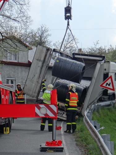 Nehoda se stala v sobotu dopoledne v bohumínské části Záblatí v Bezručově ulici, kam vyjely dvě jednotky Hasičského záchranného sboru Moravskoslezského kraje (HZS MSK) - ze stanic v Bohumíně a Karviné, odkud přijel jeřáb Demag/Terex. Obešla se bez zranění i bez úniku provozních kapalin. Zásah hasičů trval čtyři hodiny. Uzavřenou silnici (MP Bohumín) šlo objet boční ulicí.