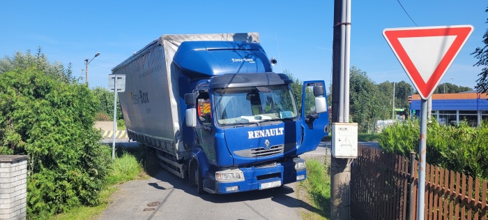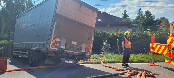 Dvě jednotky profesionálních hasičů (HZS MSK) zasahovaly ve středu 8.9.2021 po poledni v Třinci-Oldřichovicích (okres Frýdek-Místek) u nehody českého nákladního automobilu Renault, který visel pravým zadním kolem nad hlubokým otevřeným kanálem a nemohl vyjet. Zpět na silnici mu musel pomoci hasičský automobilový jeřáb Demag/Terex.